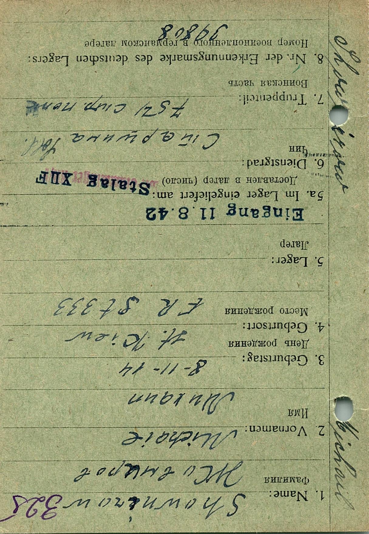Военнопленные, трофейные карточки. Киевская обл.