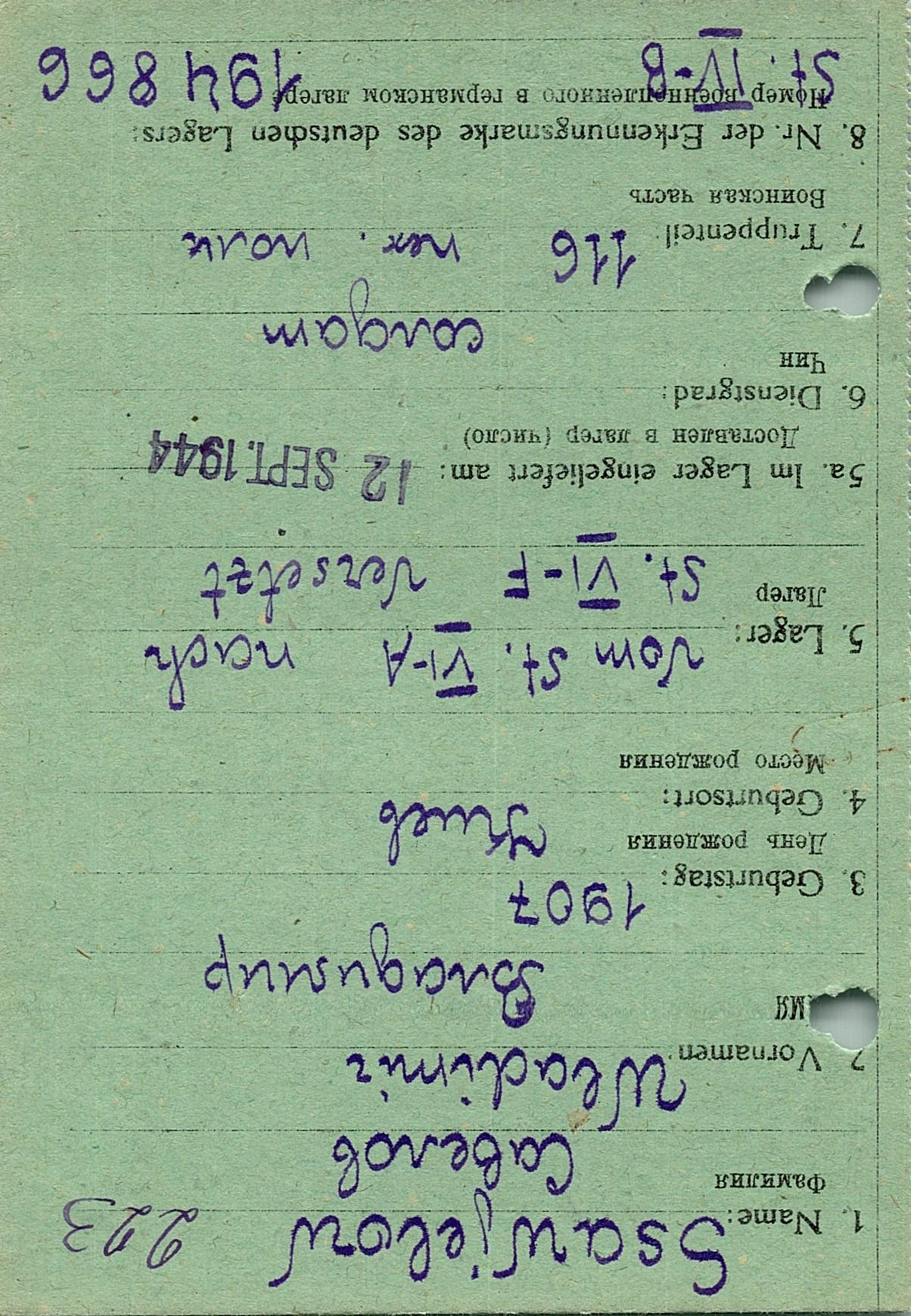 Военнопленные, трофейные карточки. Киевская обл.