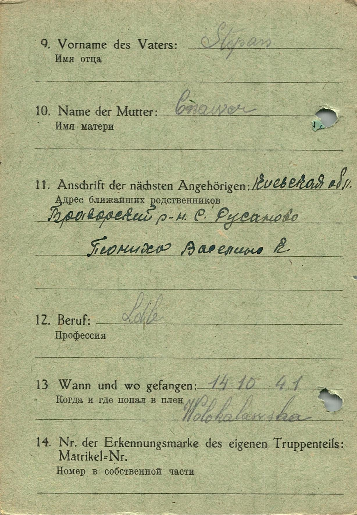 Военнопленные, трофейные карточки. Киевская обл.