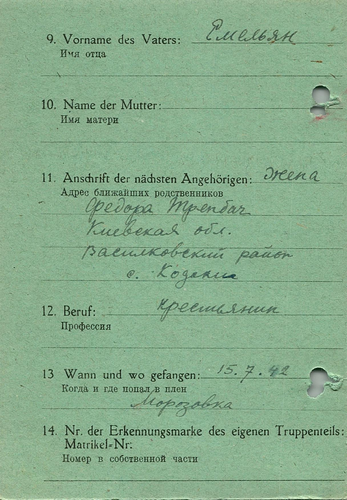 Военнопленные, трофейные карточки. Киевская обл.