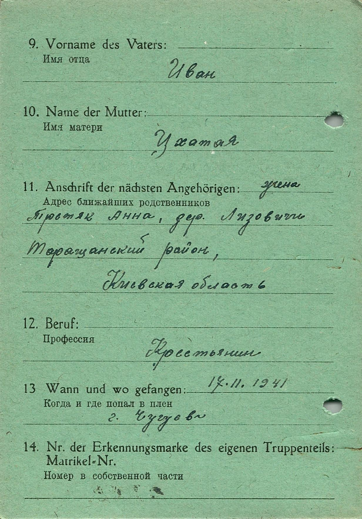 Военнопленные, трофейные карточки. Киевская обл.