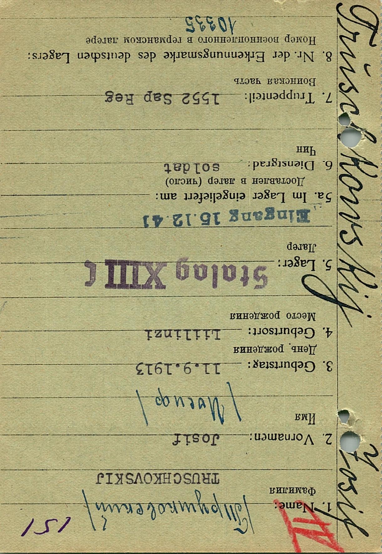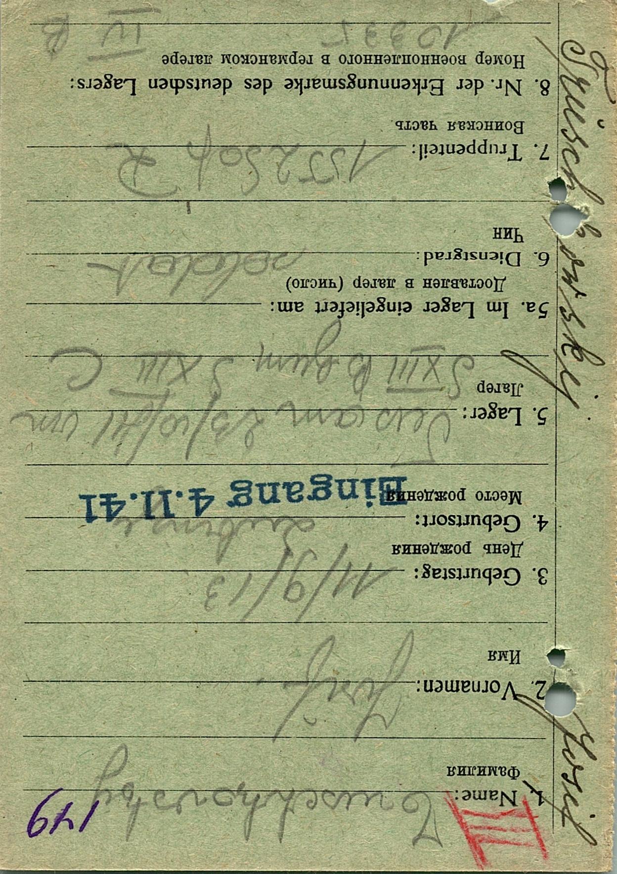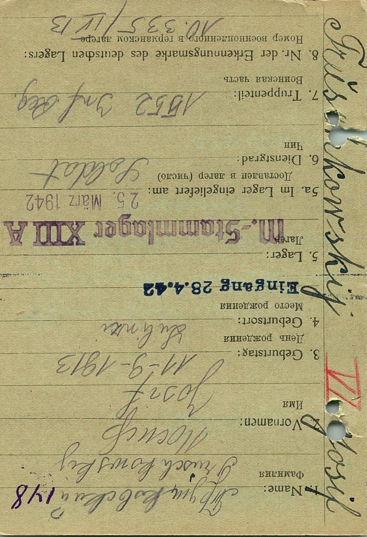 Военнопленные, трофейные карточки. Киевская обл.