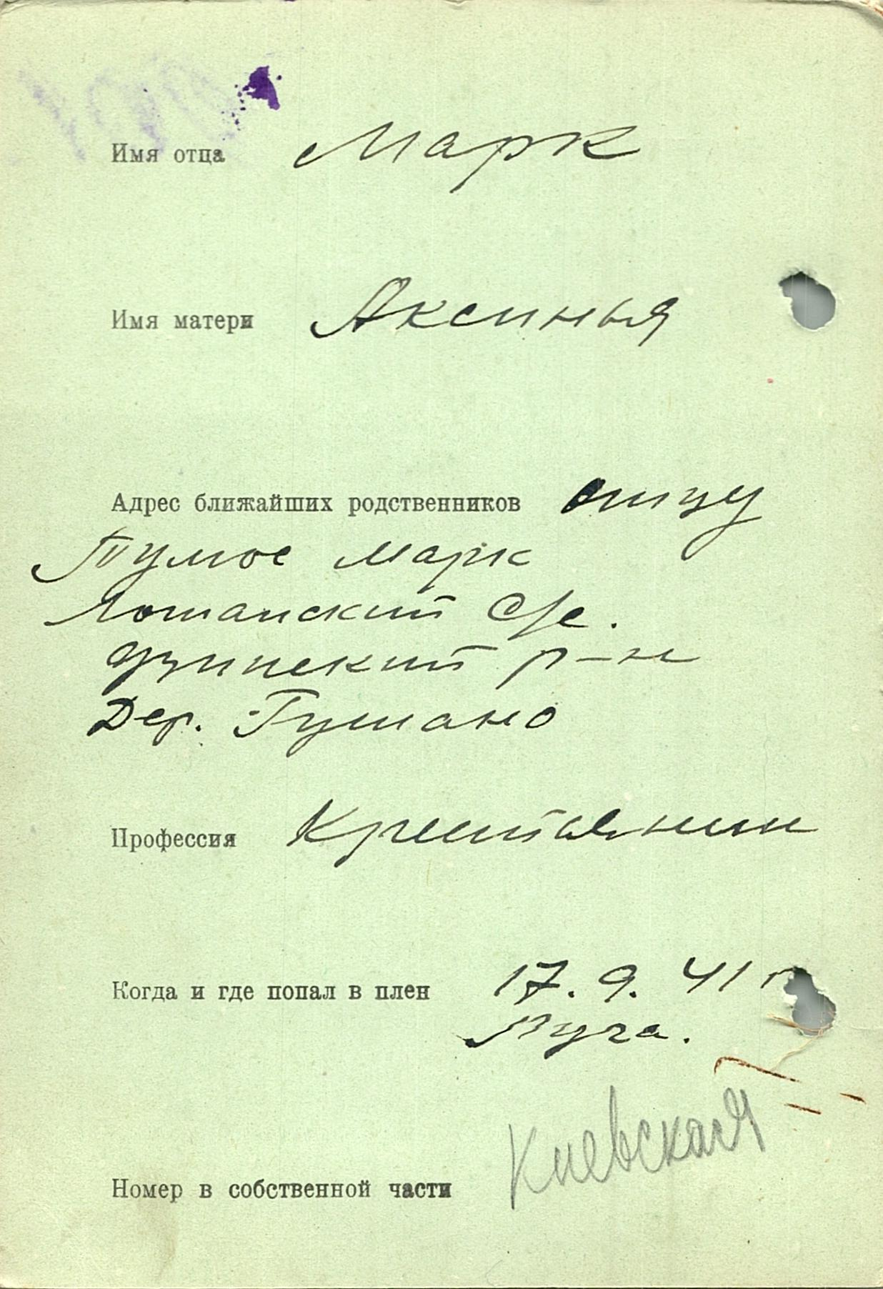 Военнопленные, трофейные карточки. Киевская обл.