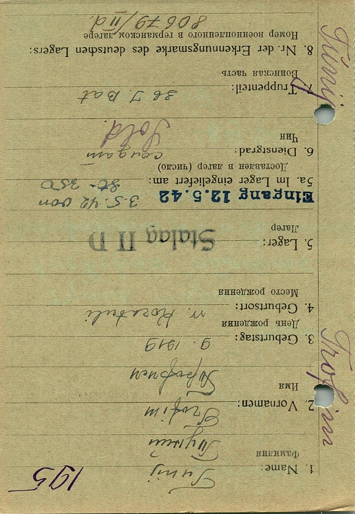 Военнопленные, трофейные карточки. Киевская обл.
