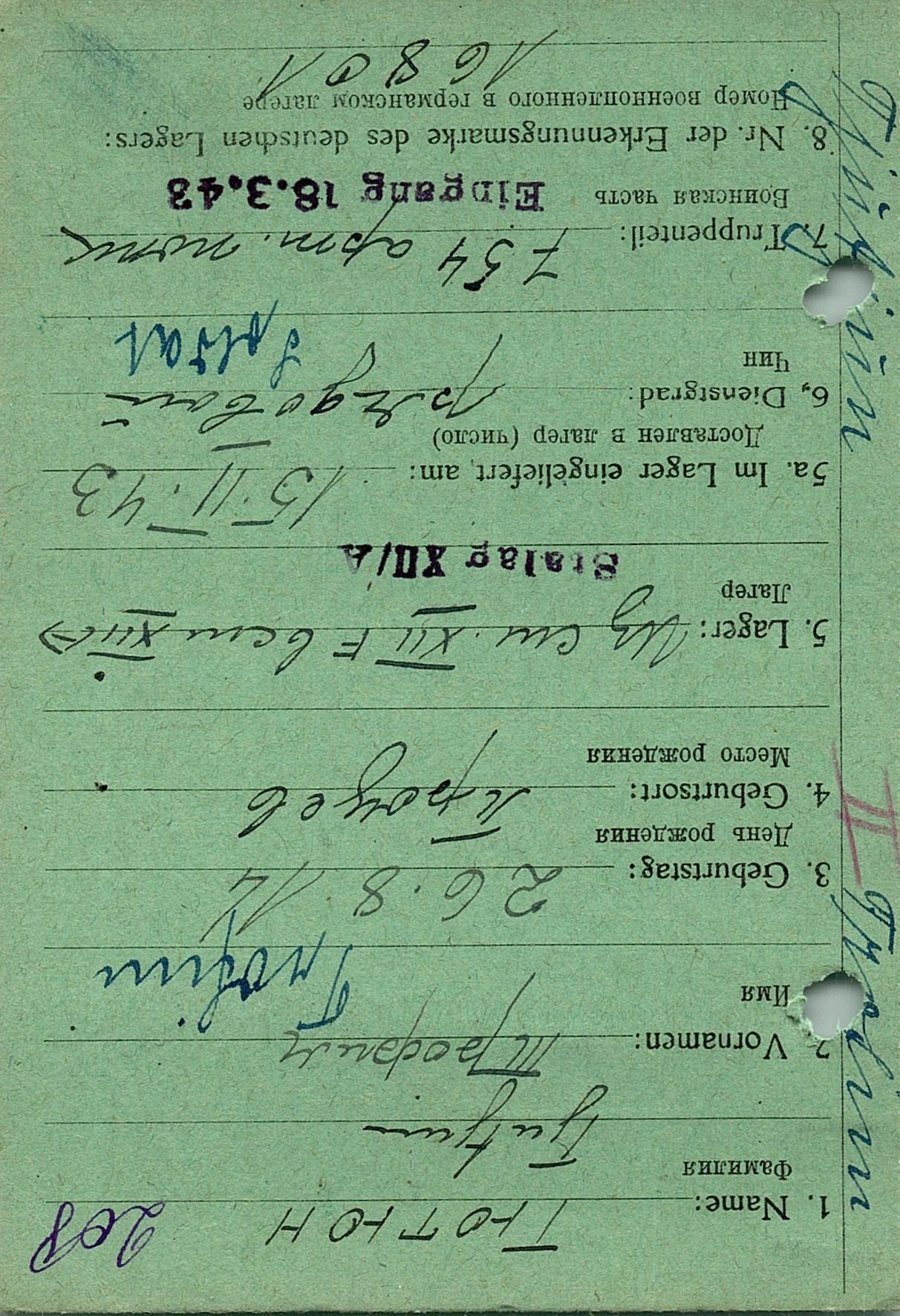 Военнопленные, трофейные карточки. Киевская обл.