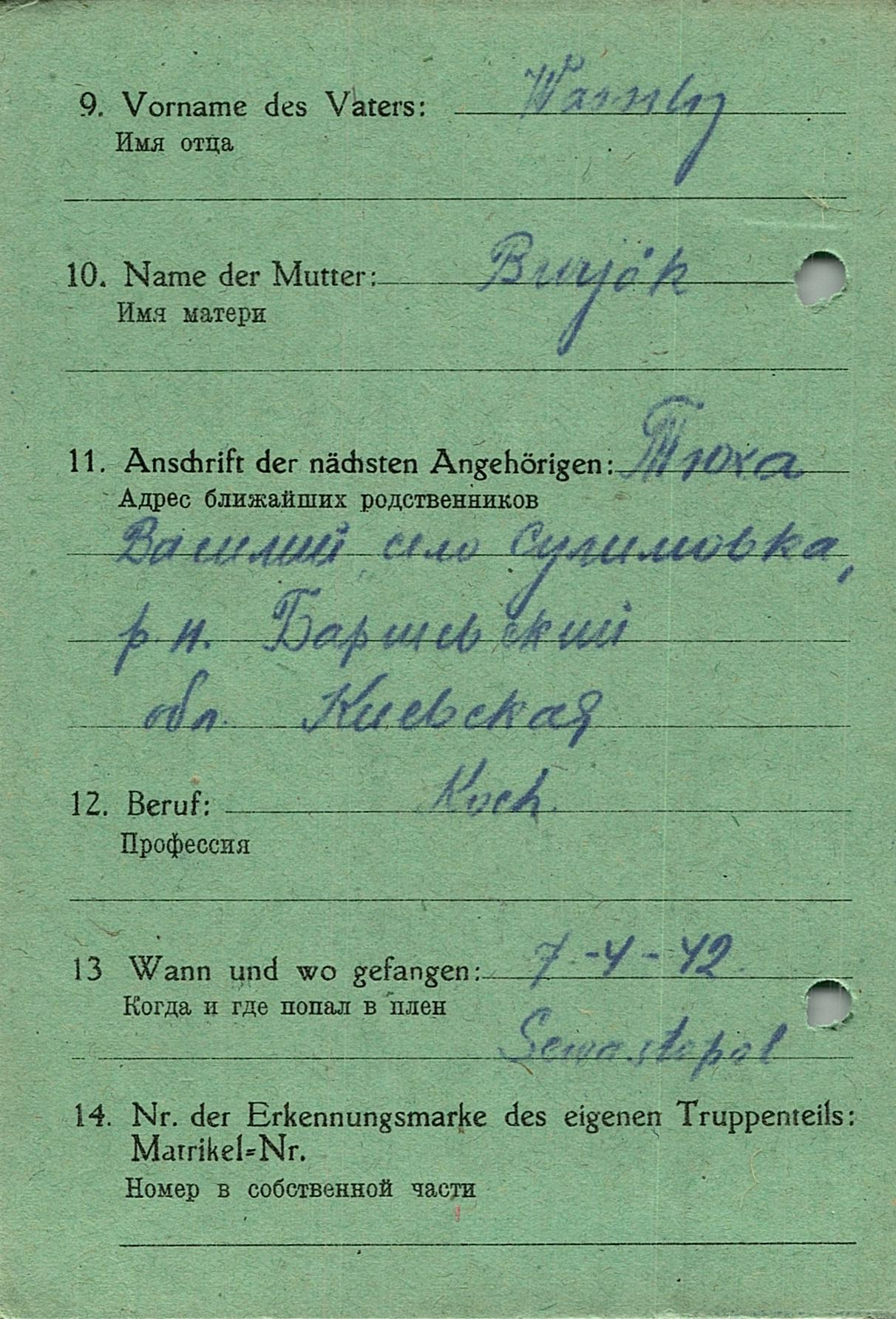Военнопленные, трофейные карточки. Киевская обл.