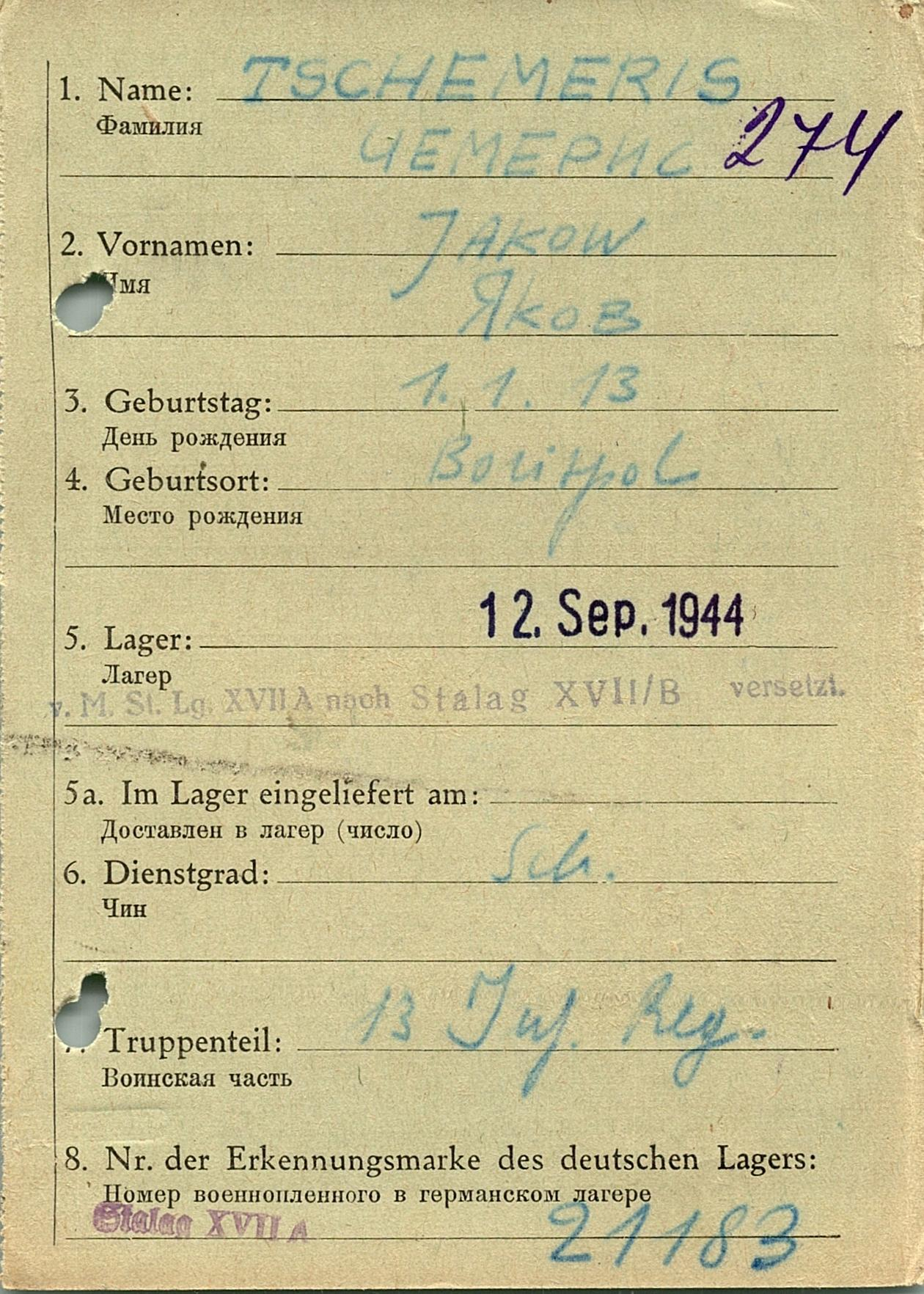 Военнопленные, трофейные карточки. Киевская обл.