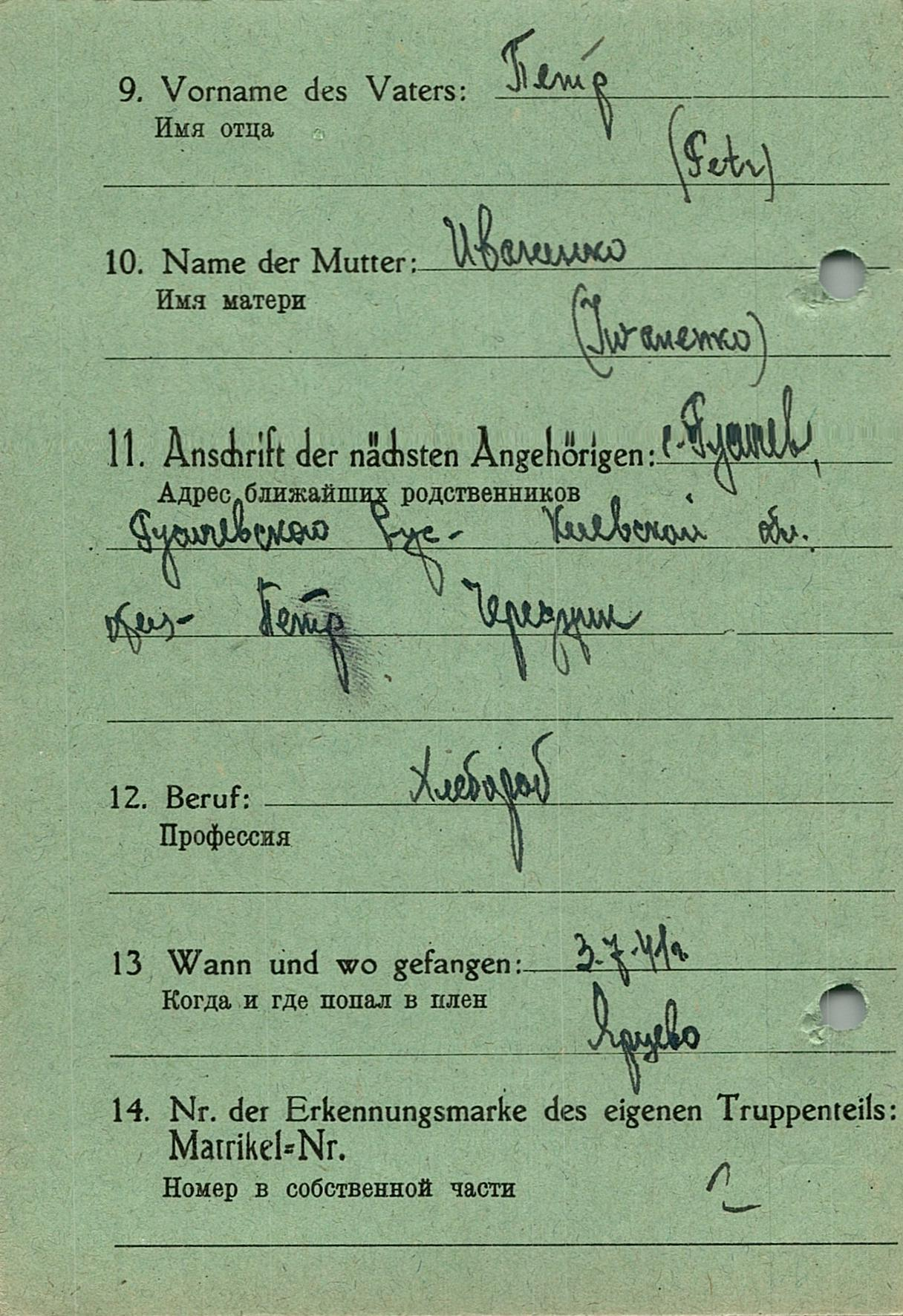 Военнопленные, трофейные карточки. Киевская обл.