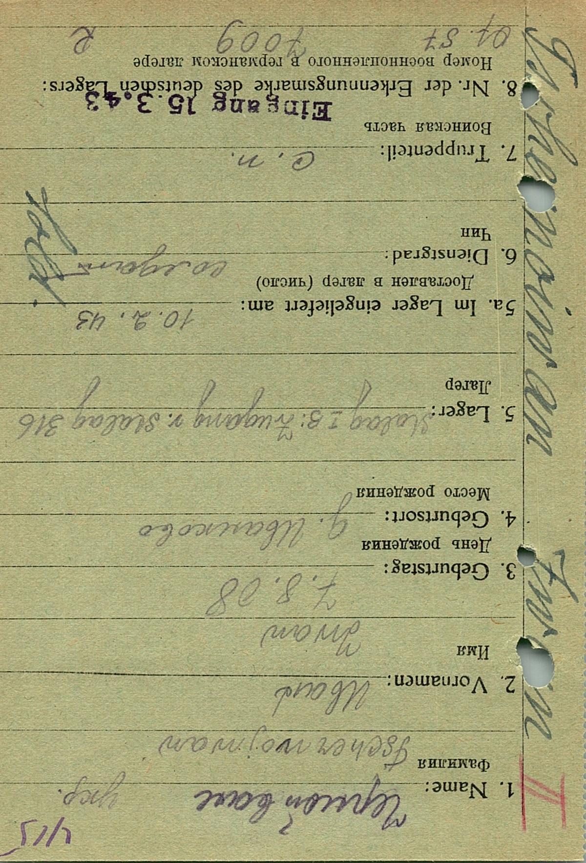 Военнопленные, трофейные карточки. Киевская обл.