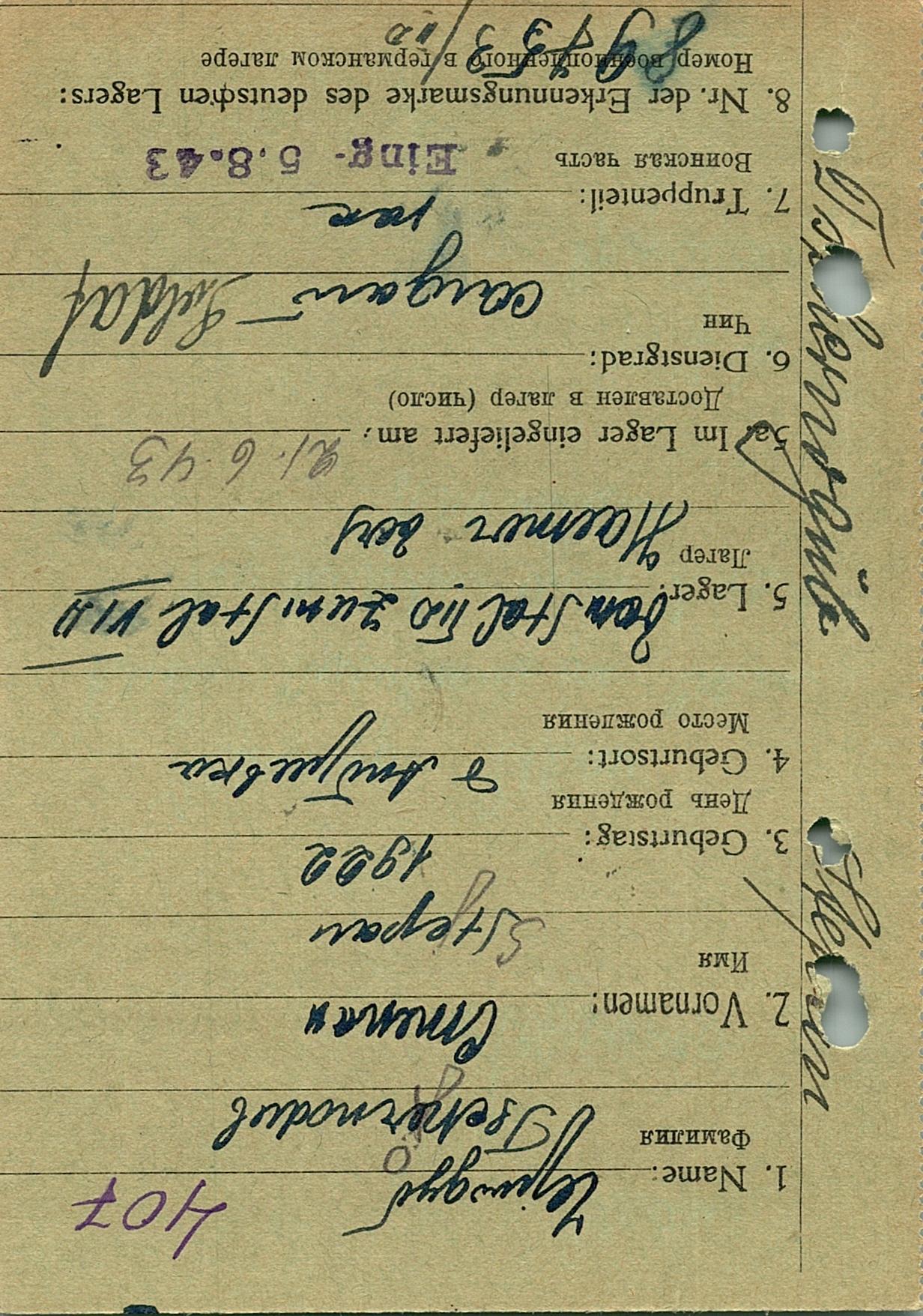 Военнопленные, трофейные карточки. Киевская обл.