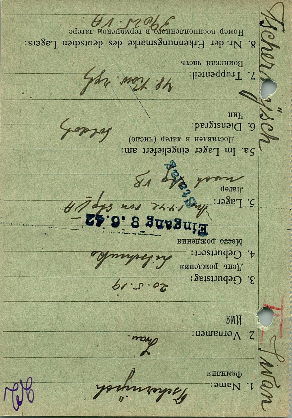 Военнопленные, трофейные карточки. Киевская обл.