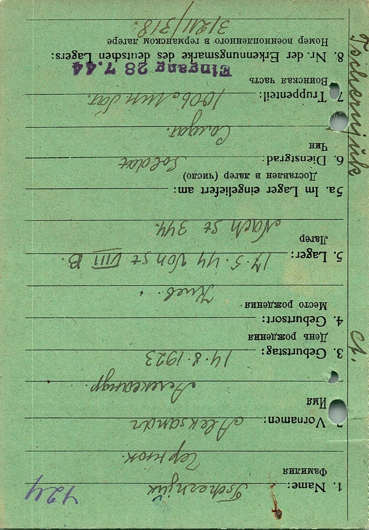 Военнопленные, трофейные карточки. Киевская обл.