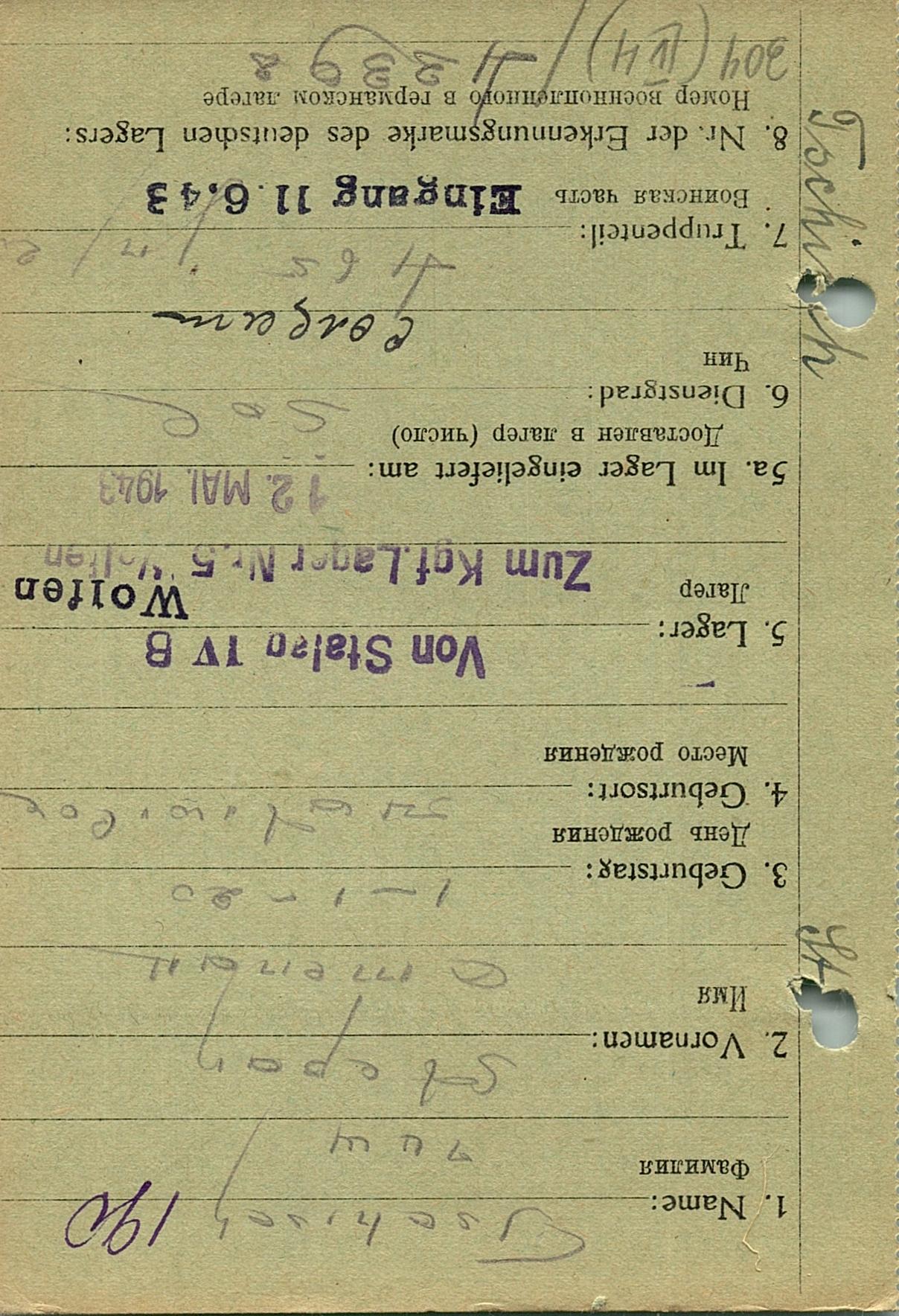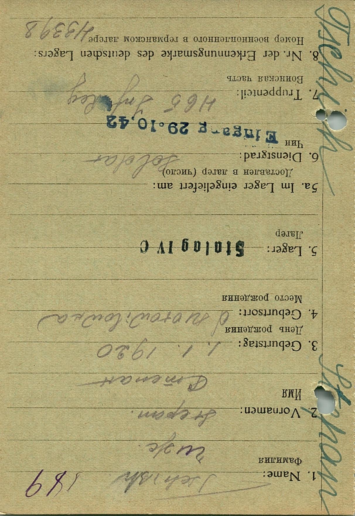 Военнопленные, трофейные карточки. Киевская обл.