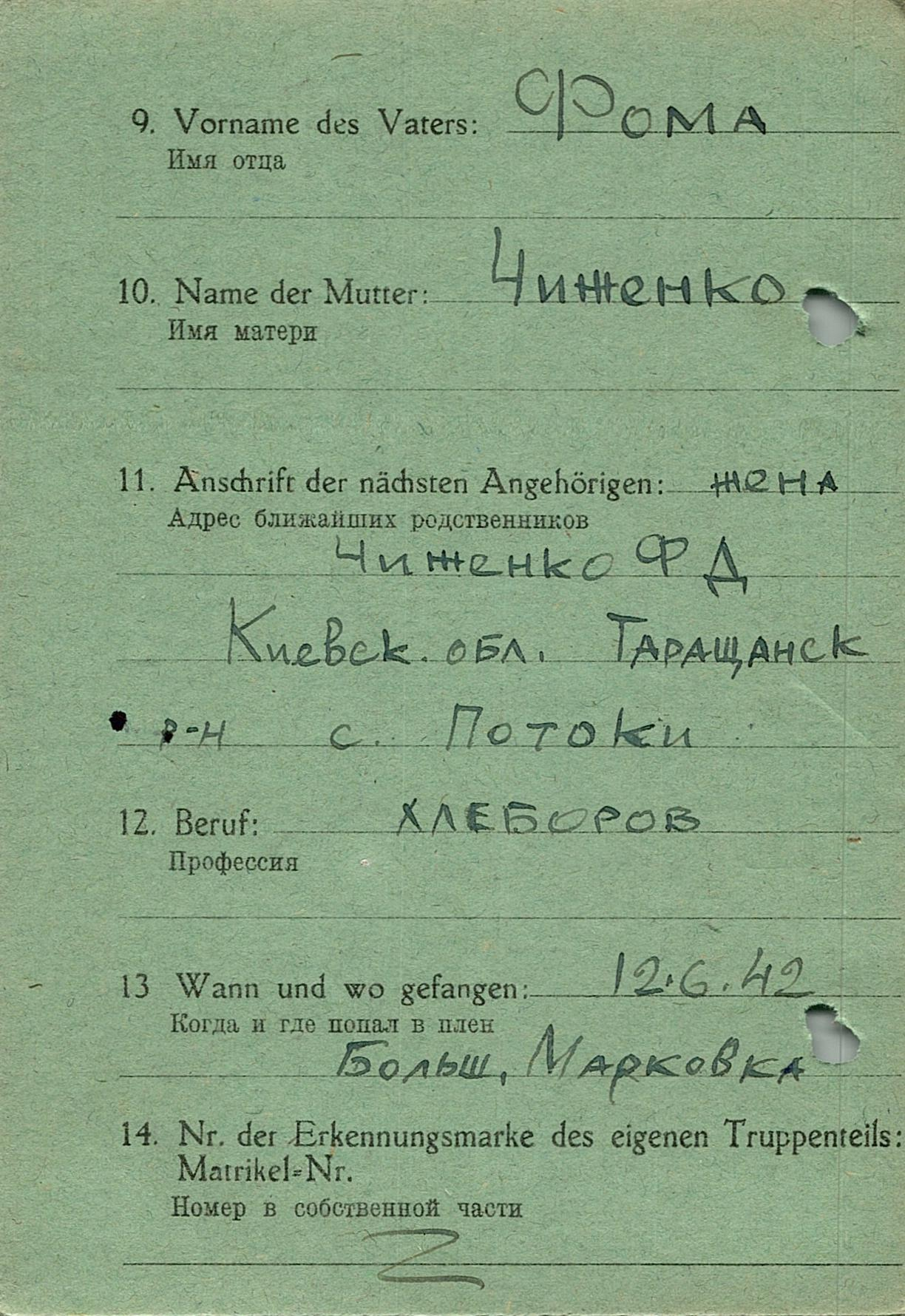 Военнопленные, трофейные карточки. Киевская обл.