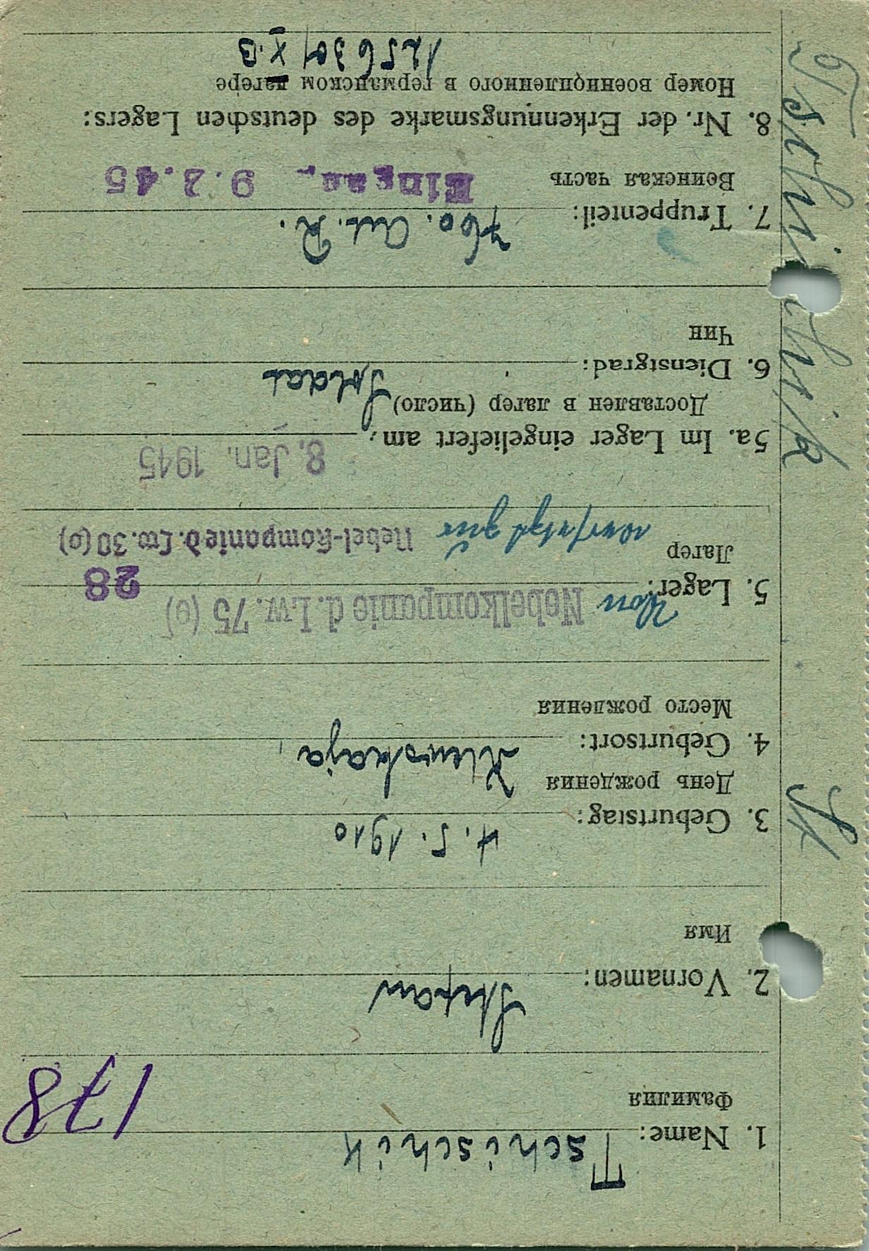 Военнопленные, трофейные карточки. Киевская обл.