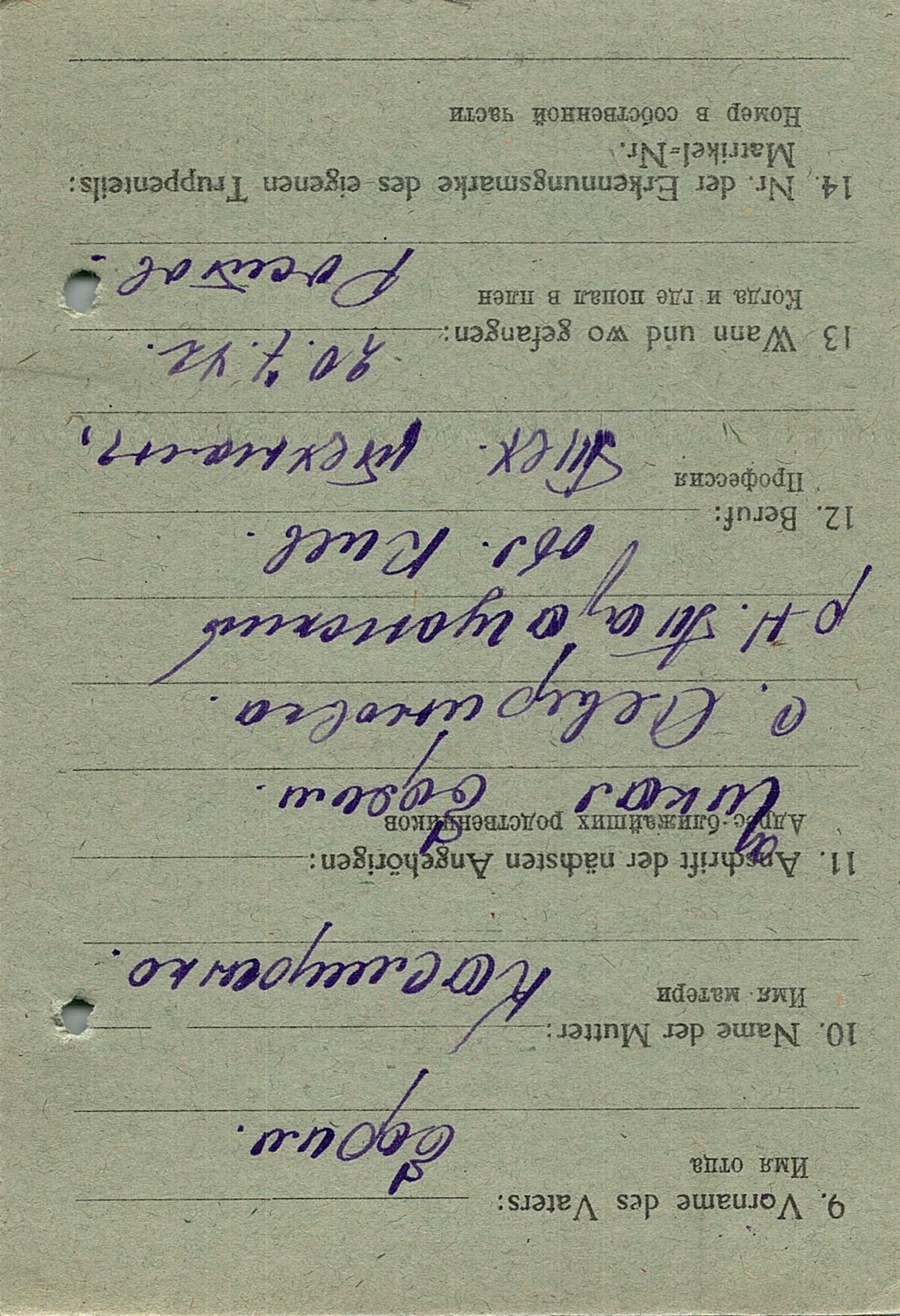 Военнопленные, трофейные карточки. Киевская обл.