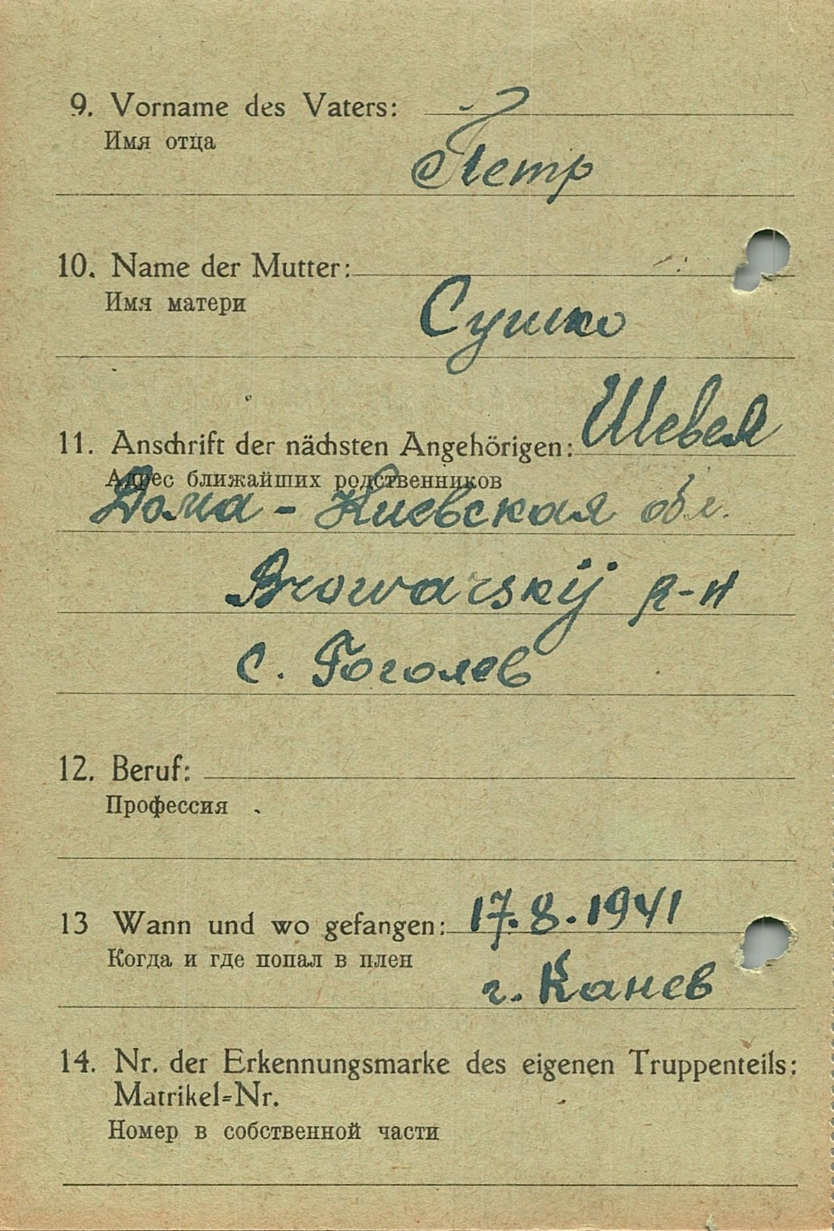Военнопленные, трофейные карточки. Киевская обл.