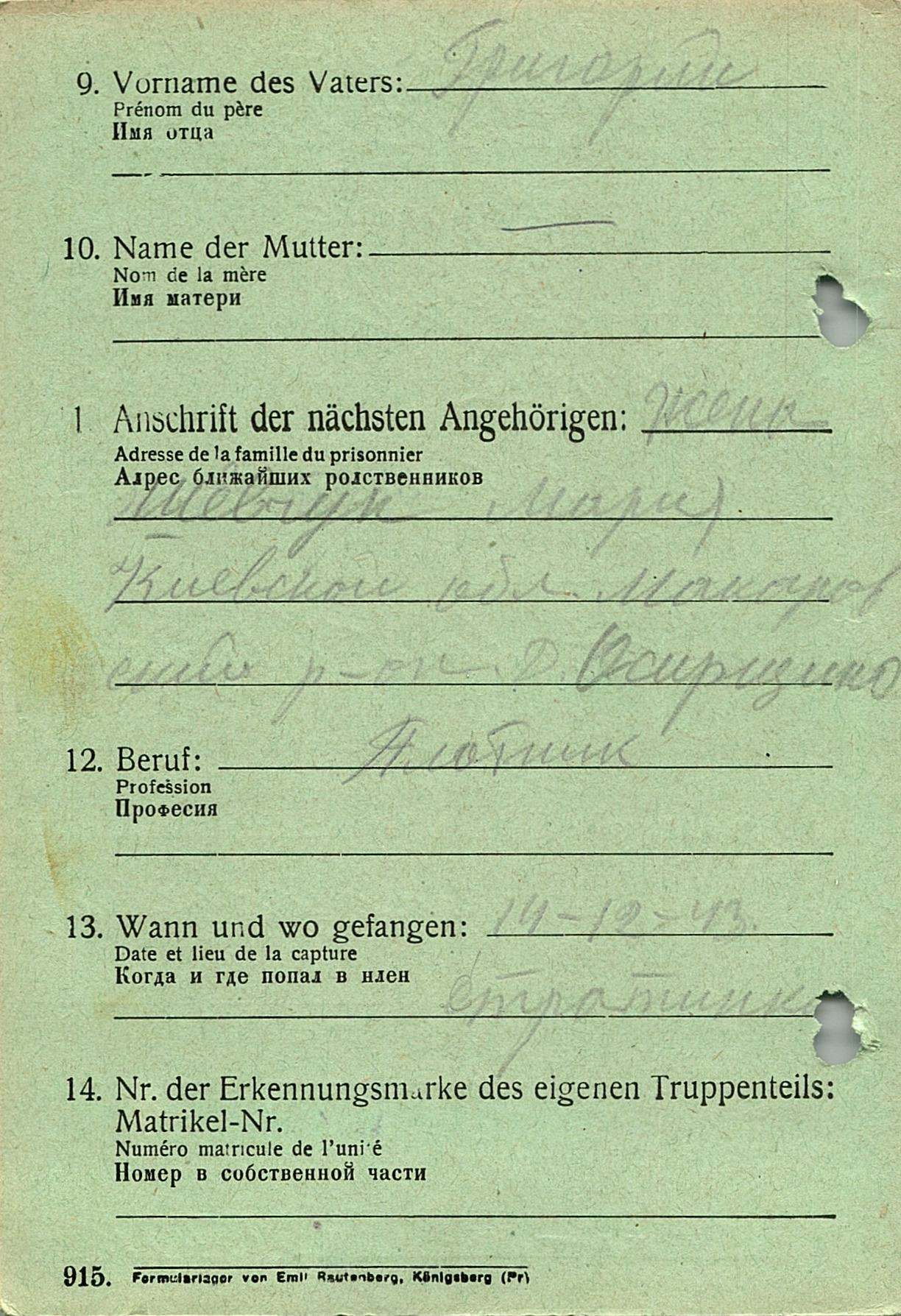 Военнопленные, трофейные карточки. Киевская обл.