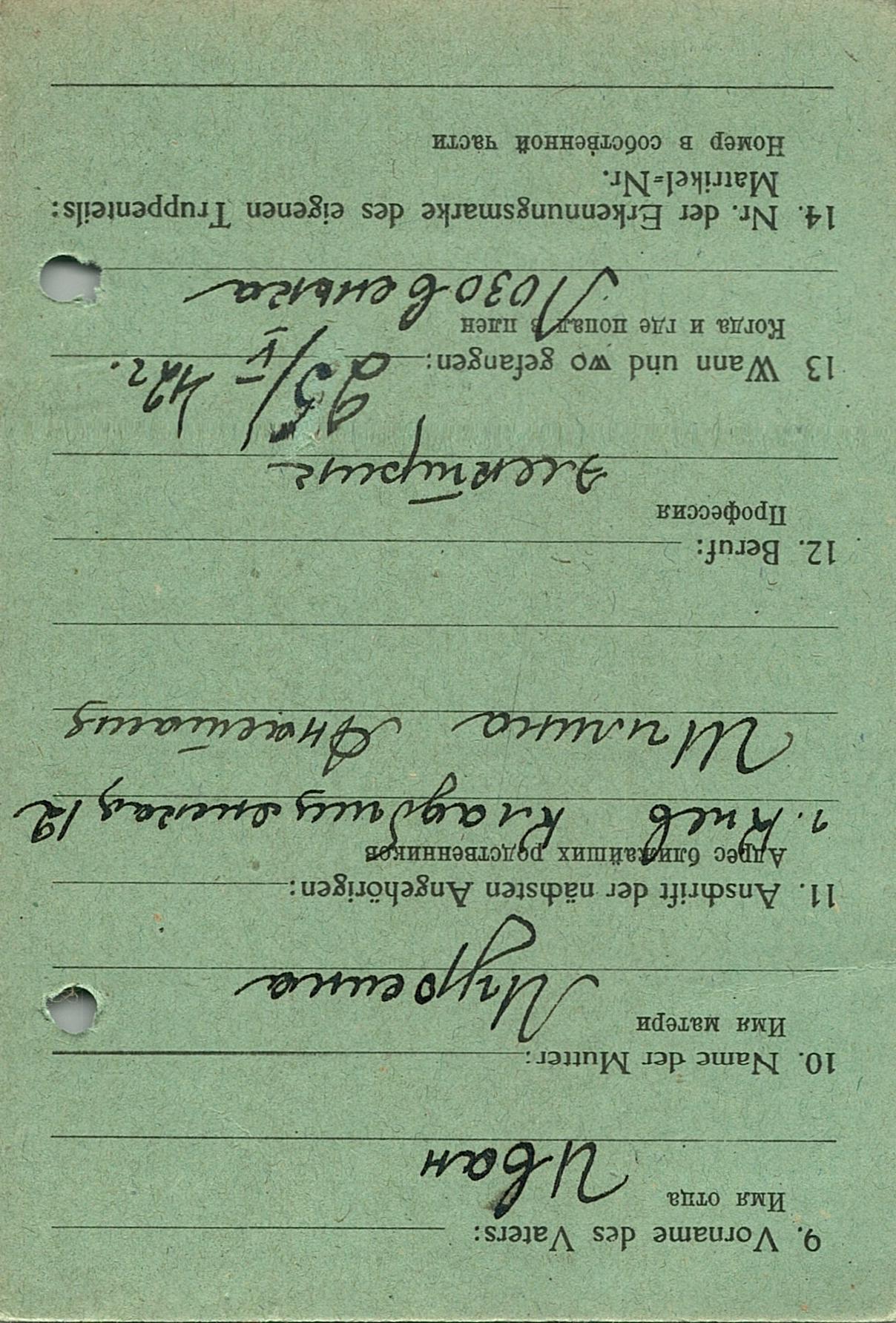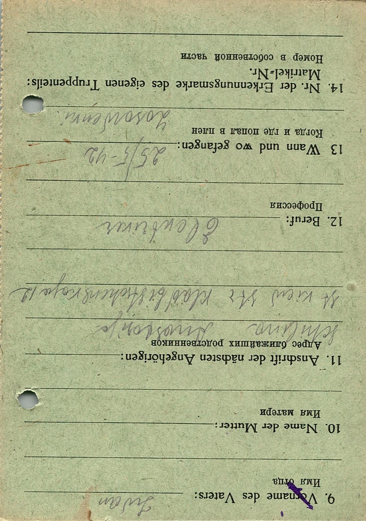 Военнопленные, трофейные карточки. Киевская обл.