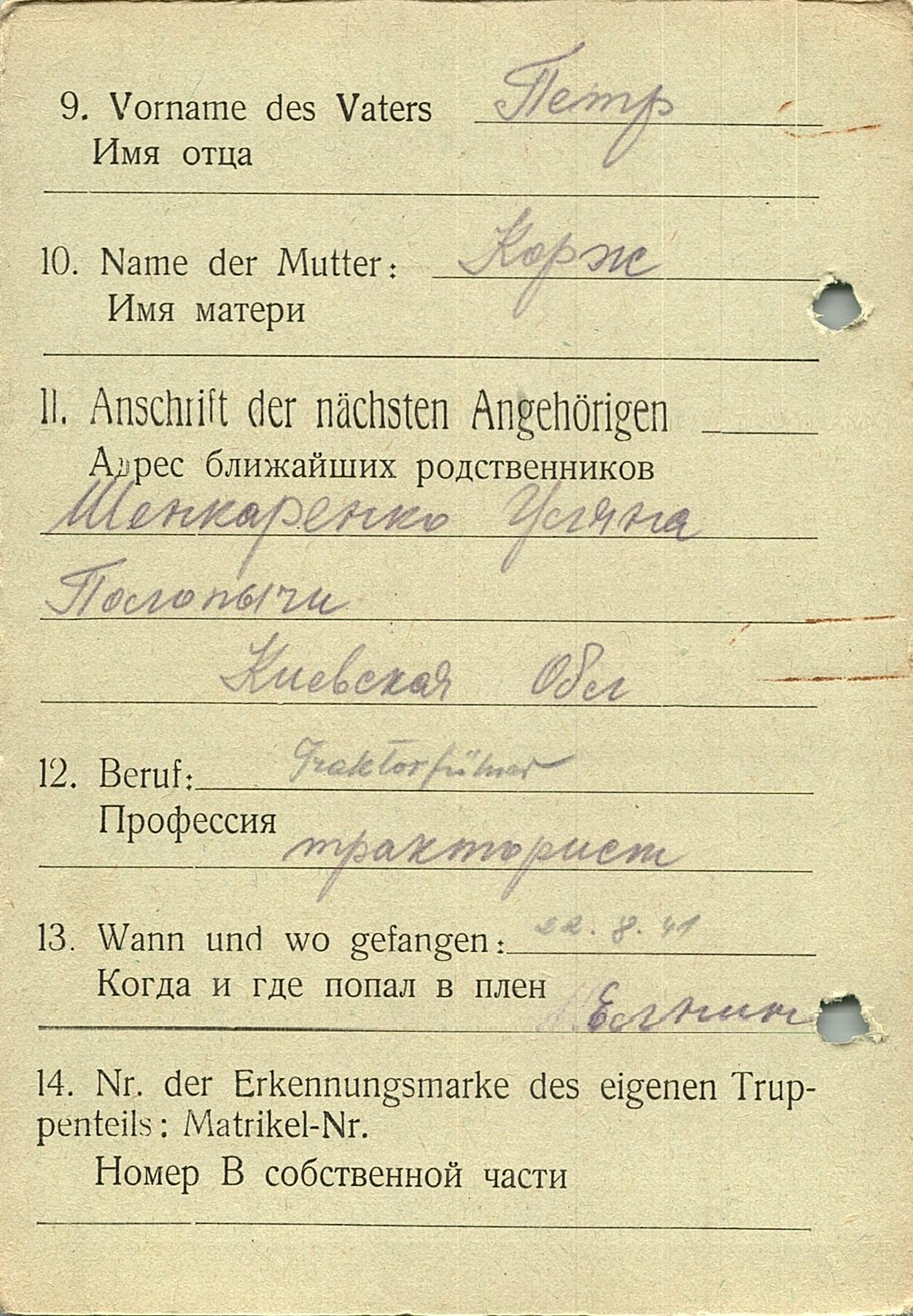 Военнопленные, трофейные карточки. Киевская обл.