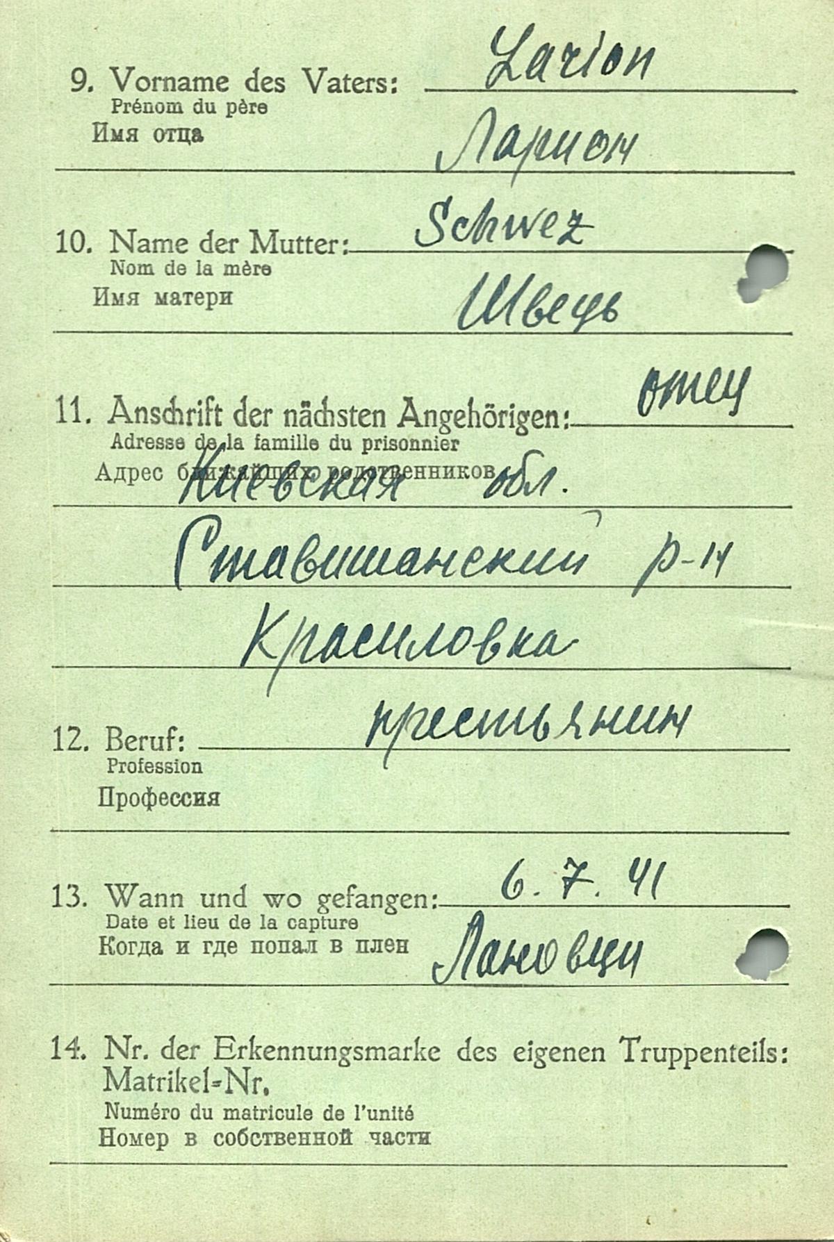 Военнопленные, трофейные карточки. Киевская обл.