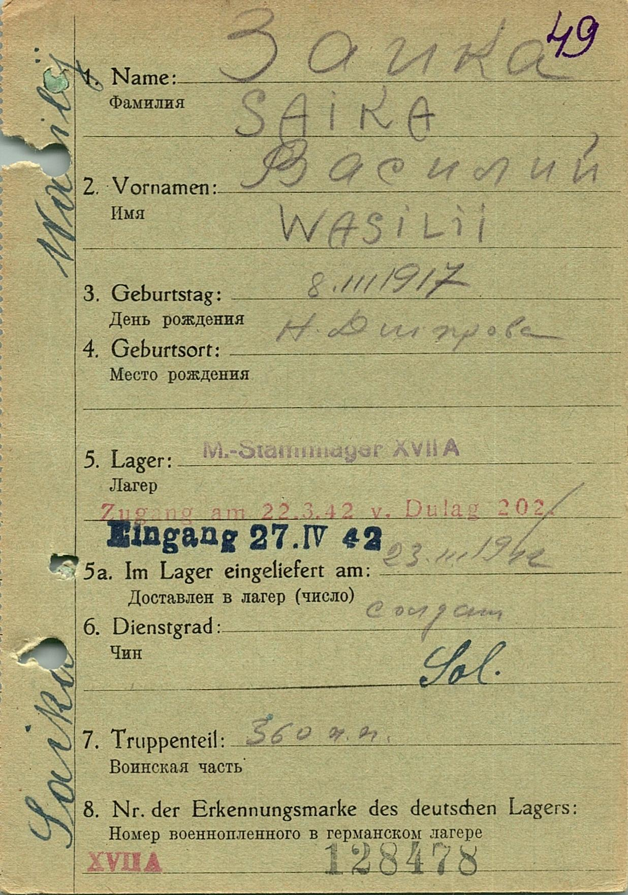 Военнопленные, трофейные карточки. Киевская обл.