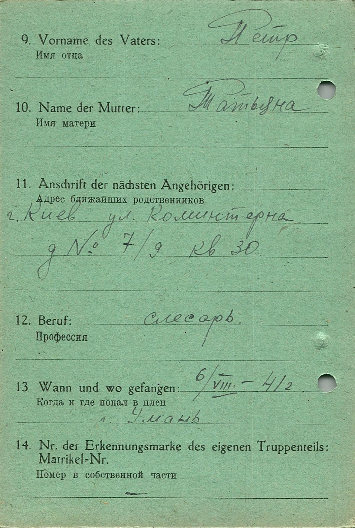 Военнопленные, трофейные карточки. Киевская обл.