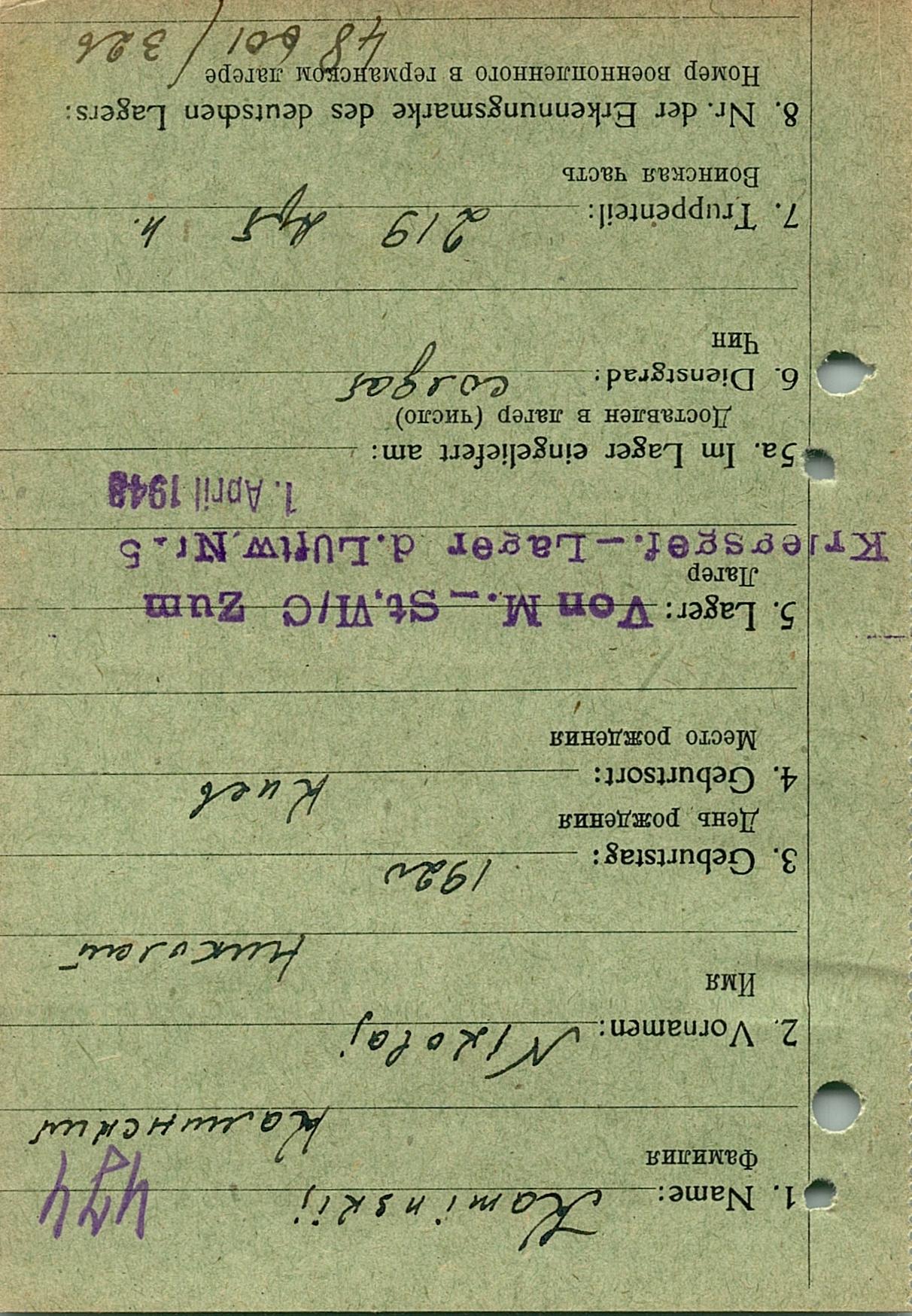 Военнопленные, трофейные карточки. Киевская обл.