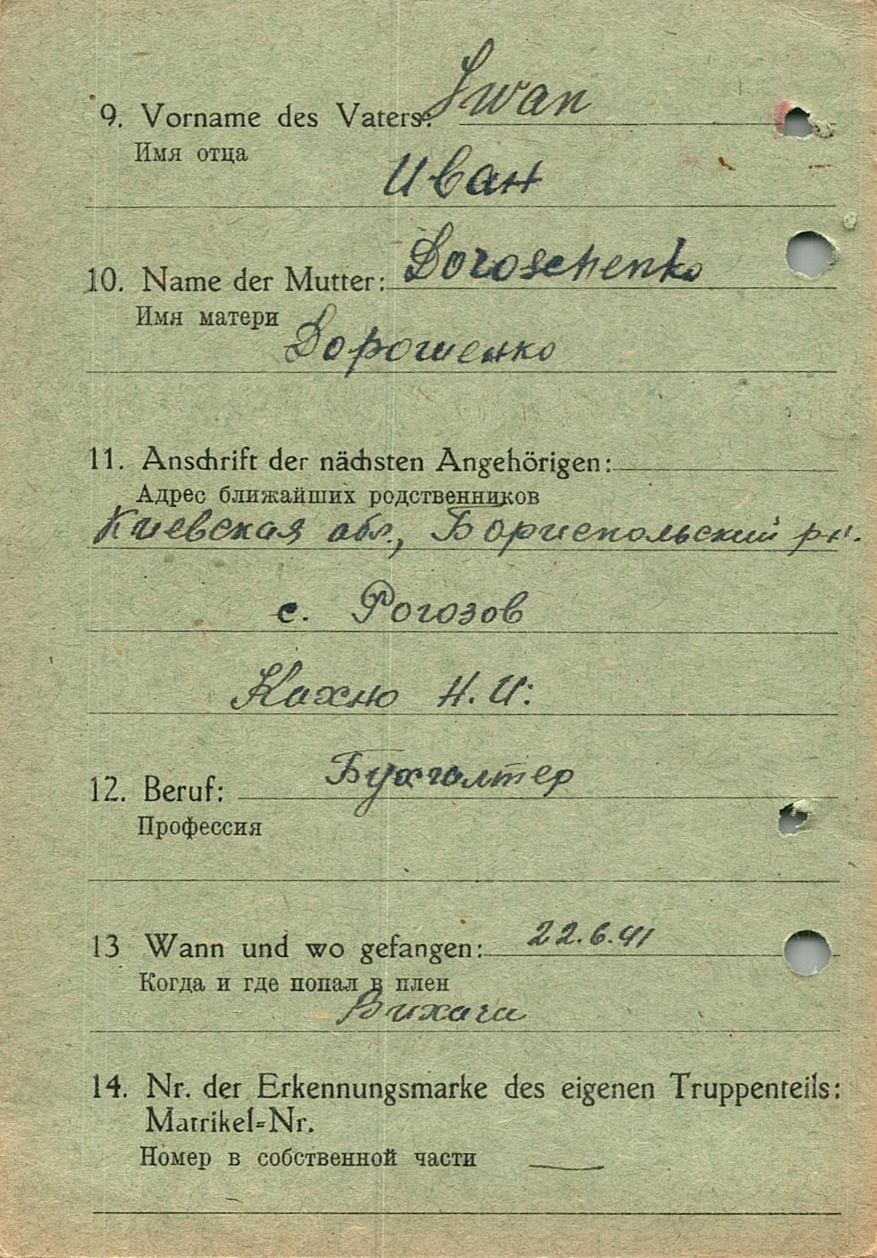 Военнопленные, трофейные карточки. Киевская обл.