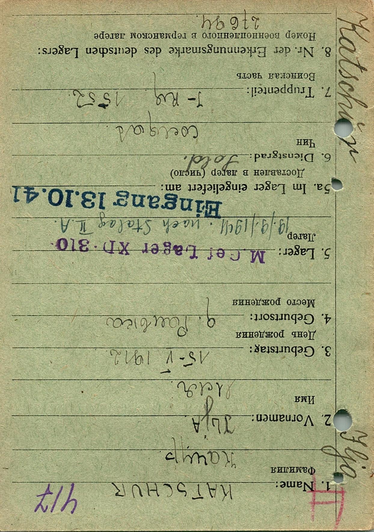 Военнопленные, трофейные карточки. Киевская обл.