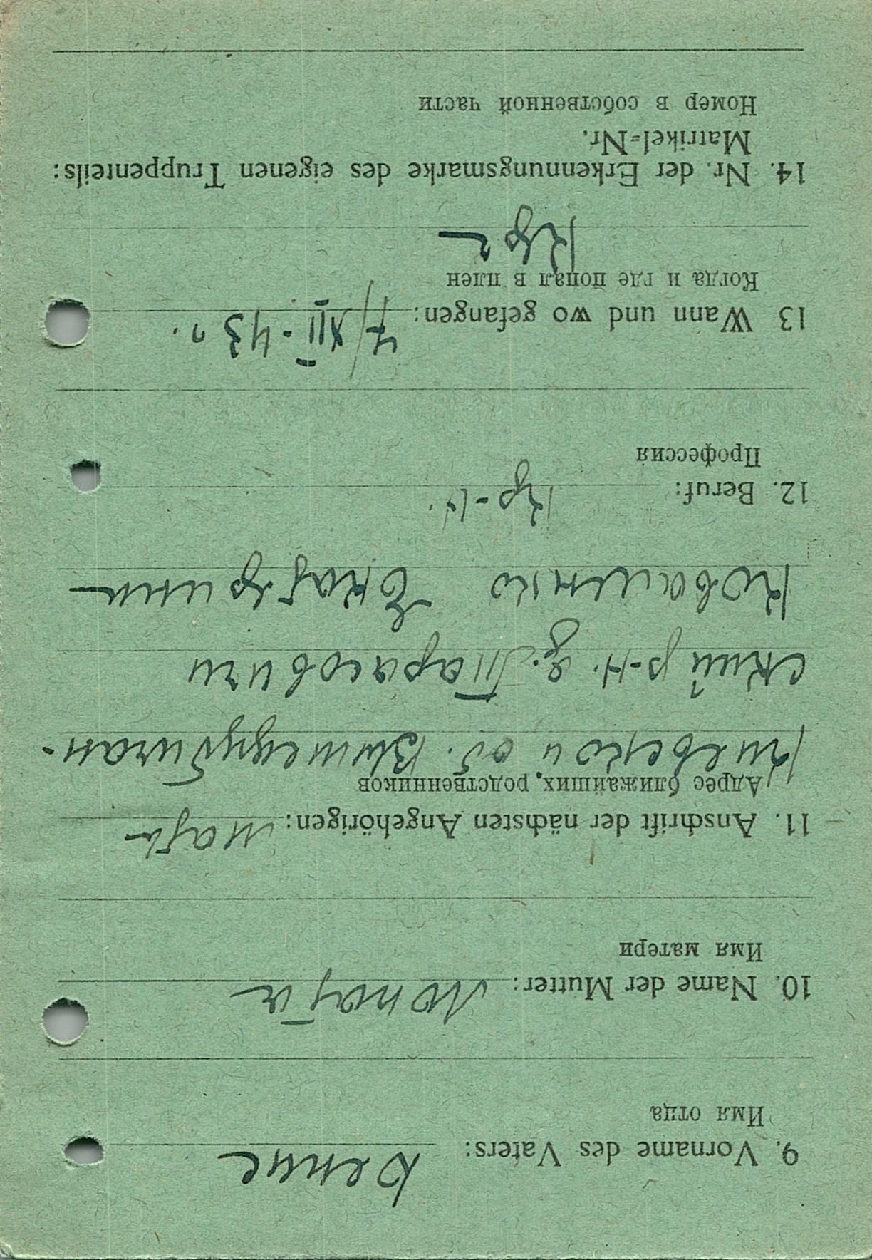 Военнопленные, трофейные карточки. Киевская обл.