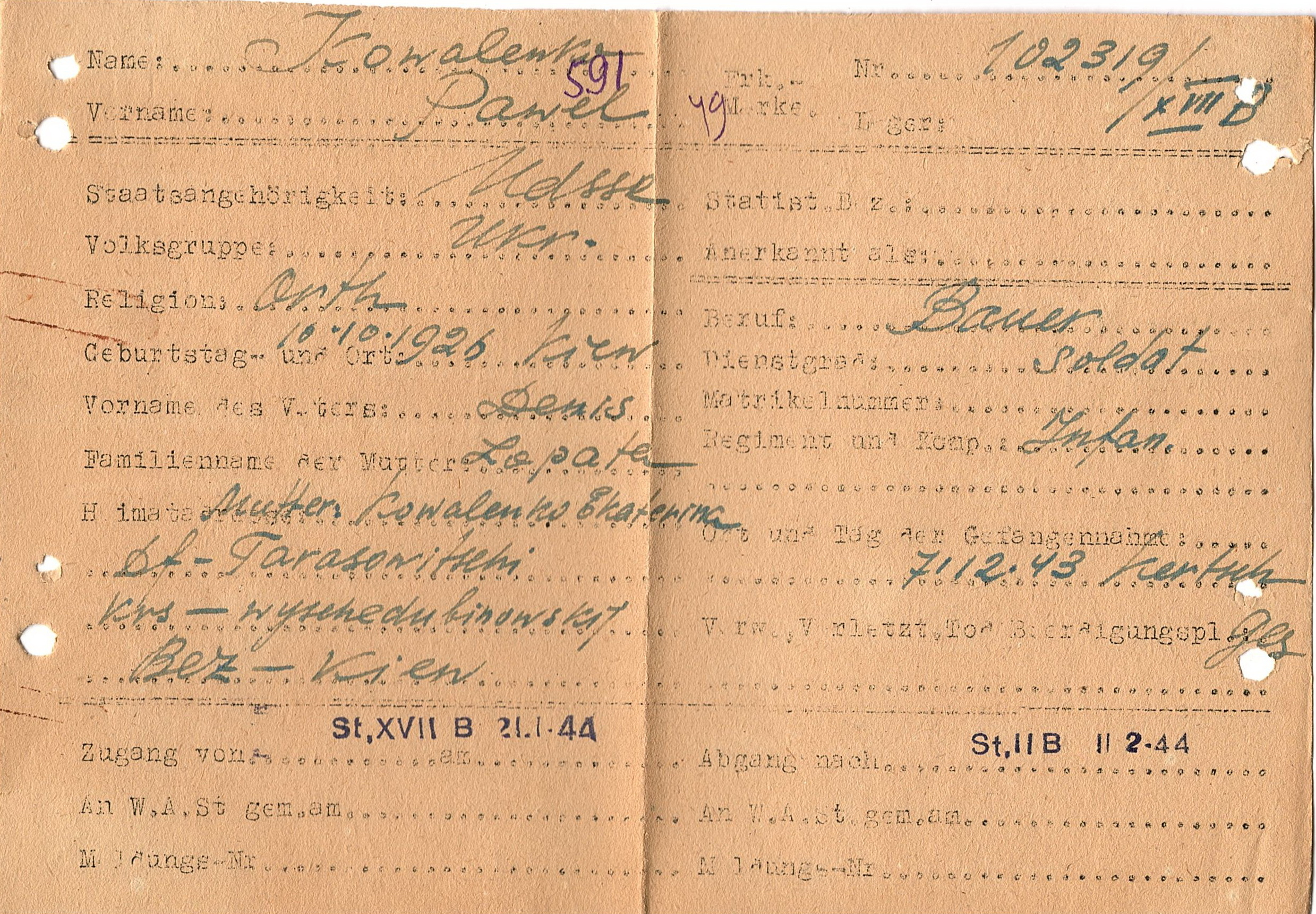 Военнопленные, трофейные карточки. Киевская обл.