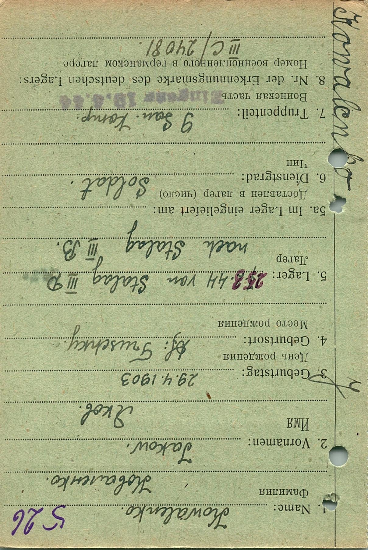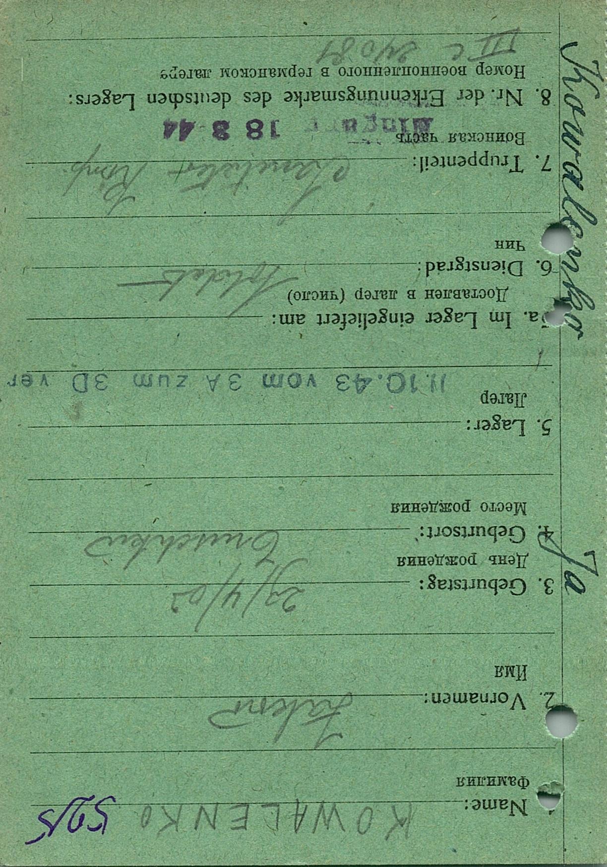 Военнопленные, трофейные карточки. Киевская обл.