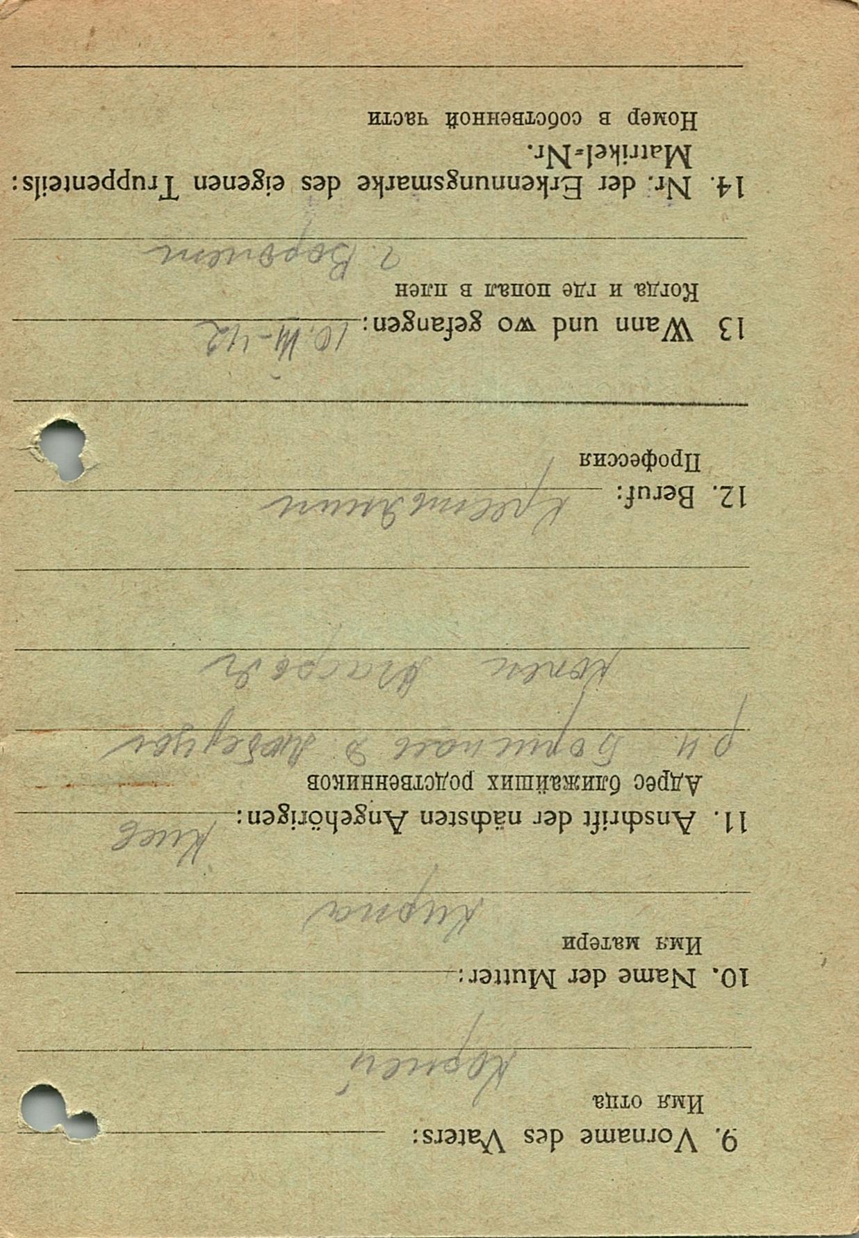 Военнопленные, трофейные карточки. Киевская обл.
