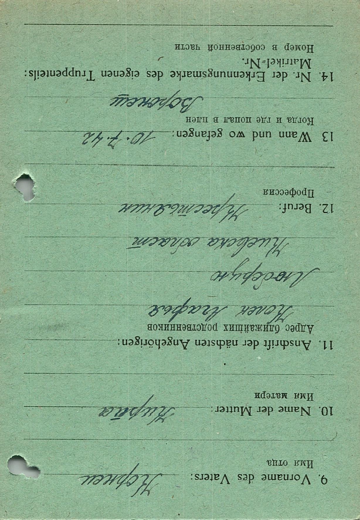 Военнопленные, трофейные карточки. Киевская обл.
