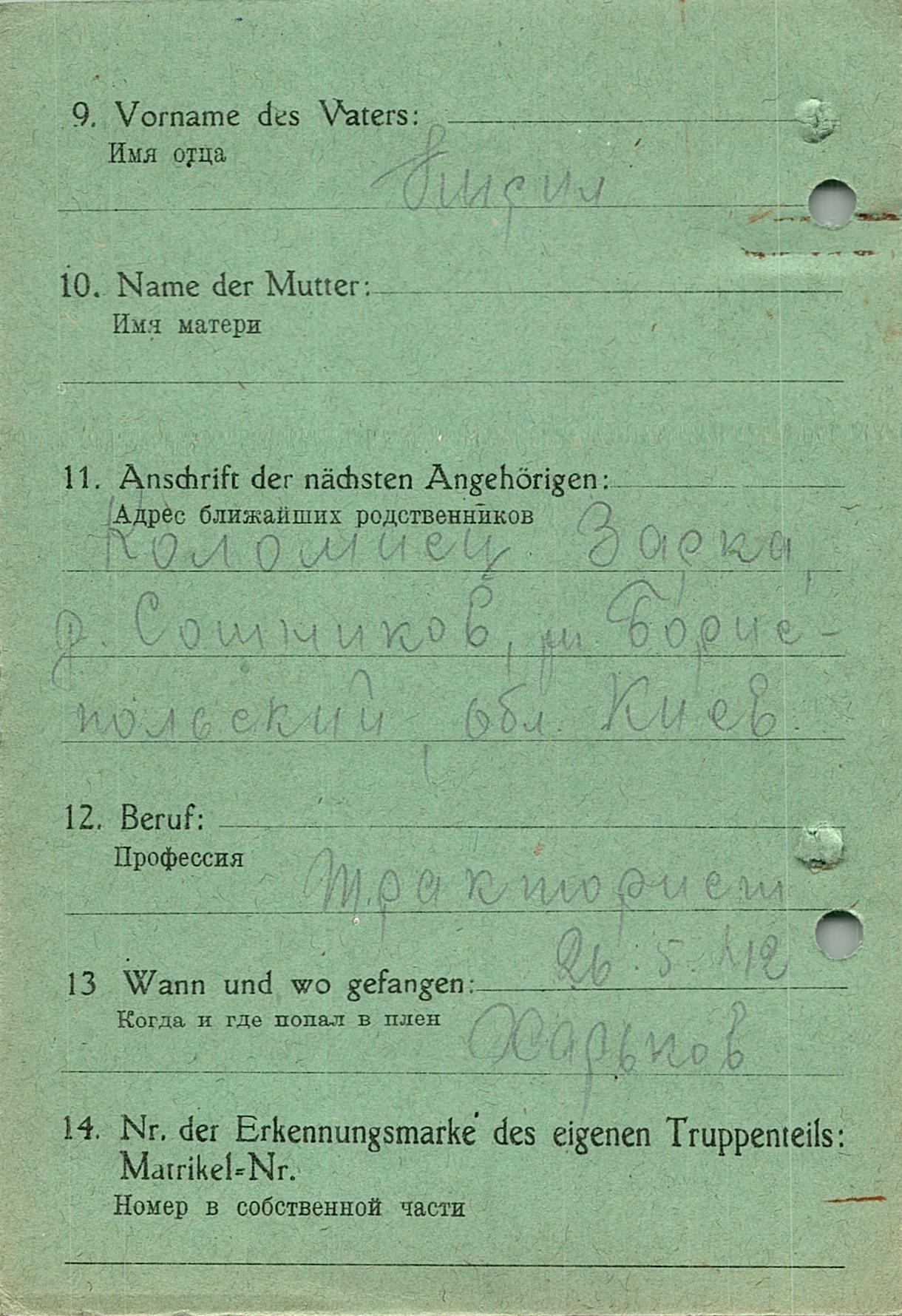 Военнопленные, трофейные карточки. Киевская обл.