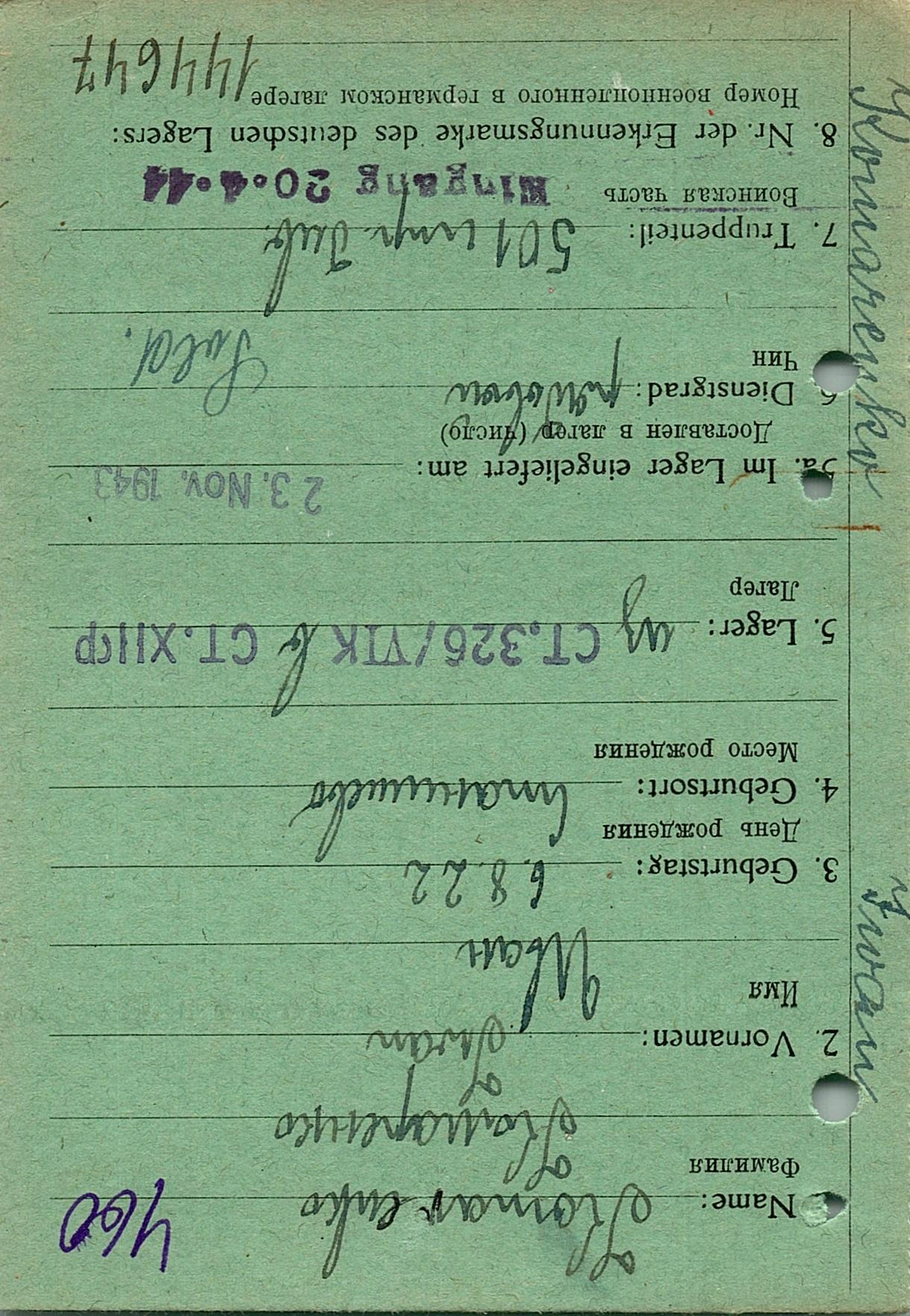 Военнопленные, трофейные карточки. Киевская обл.