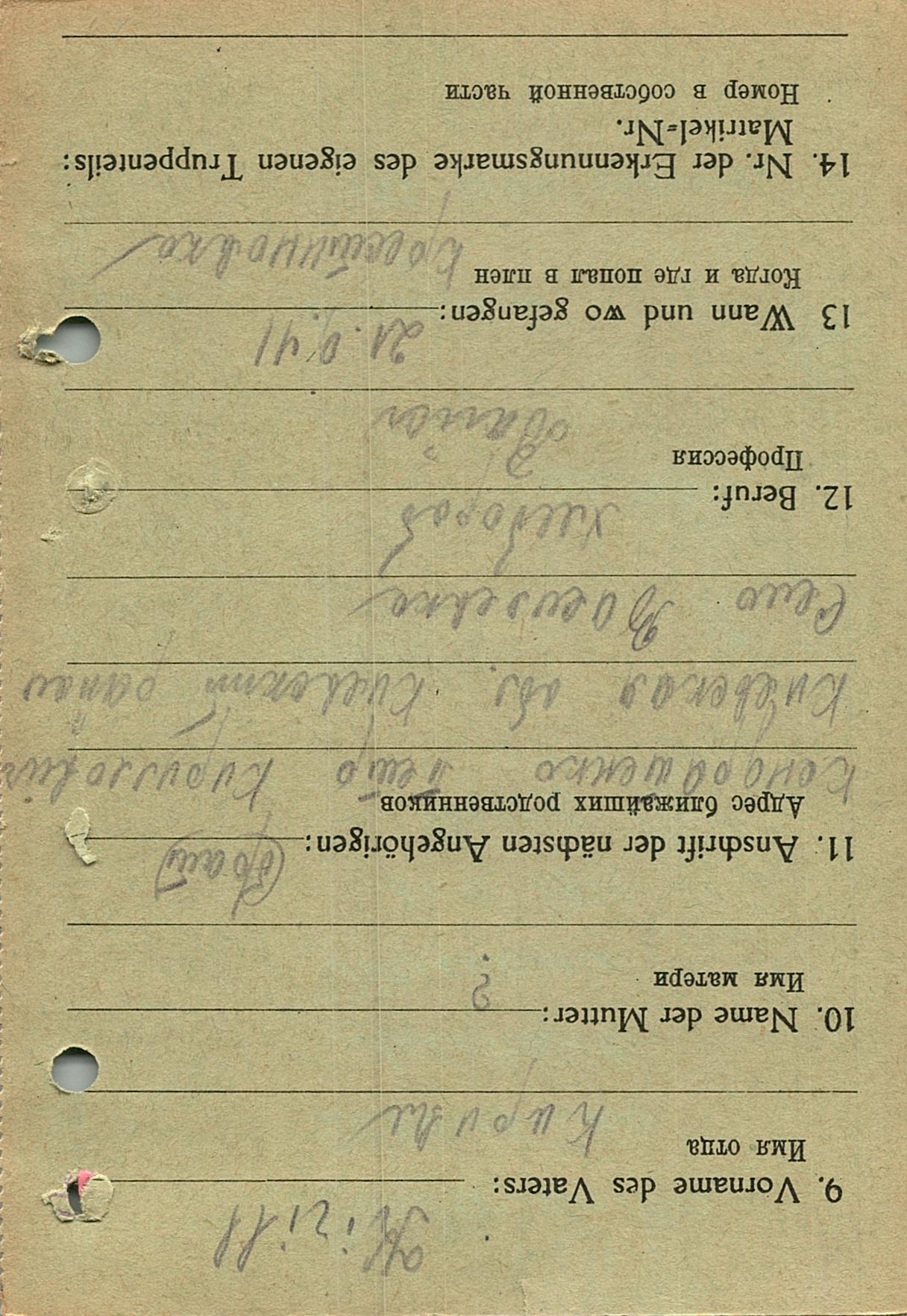 Военнопленные, трофейные карточки. Киевская обл.