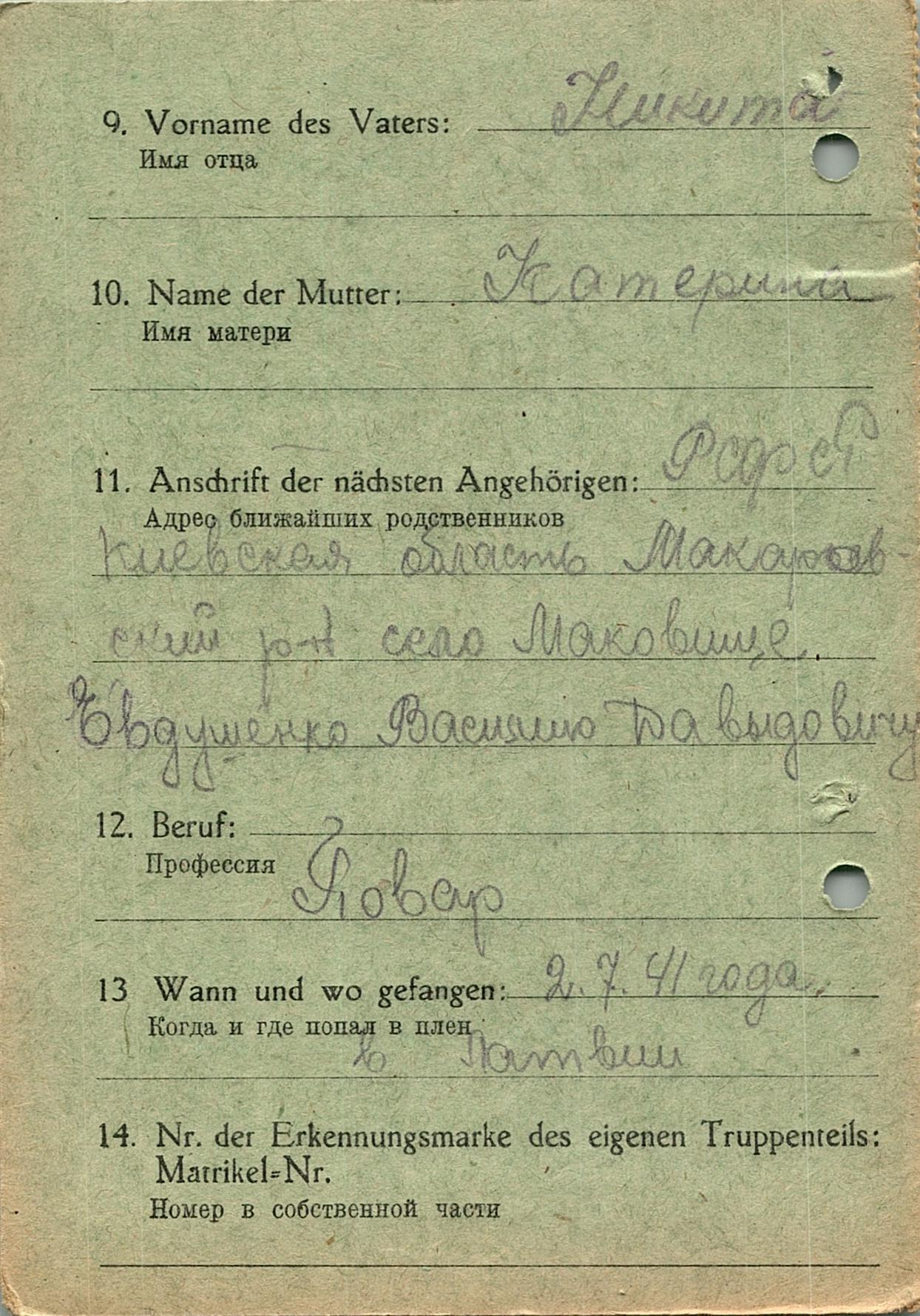 Военнопленные, трофейные карточки. Киевская обл.