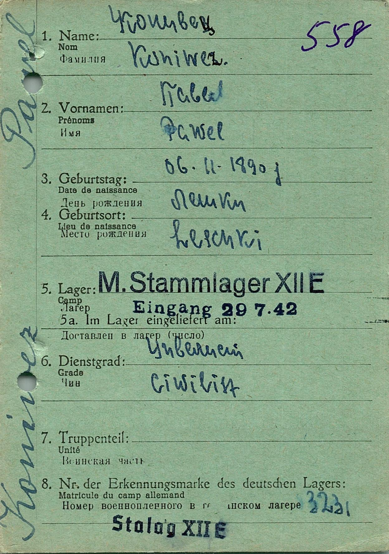 Военнопленные, трофейные карточки. Киевская обл.
