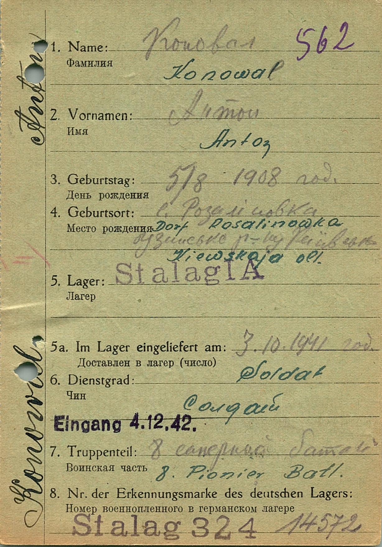 Военнопленные, трофейные карточки. Киевская обл.