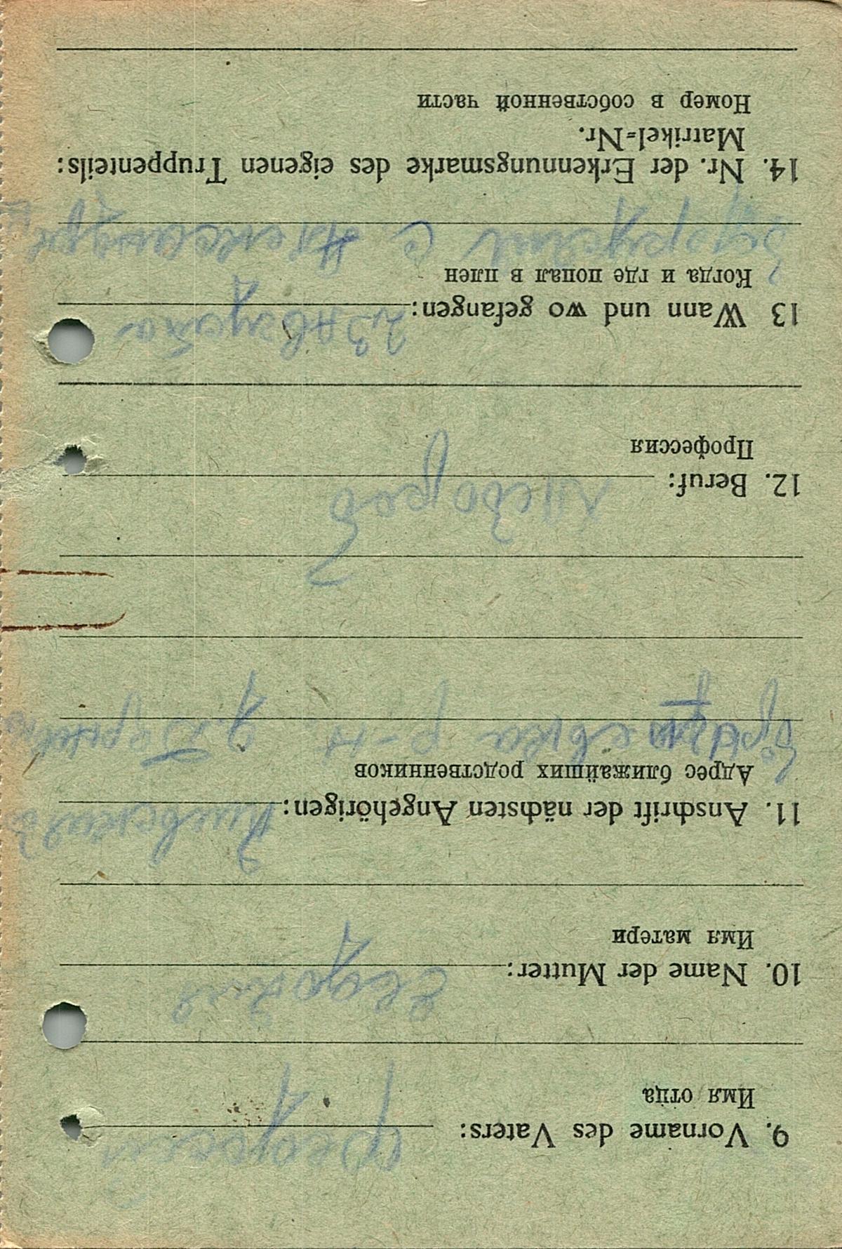Военнопленные, трофейные карточки. Киевская обл.