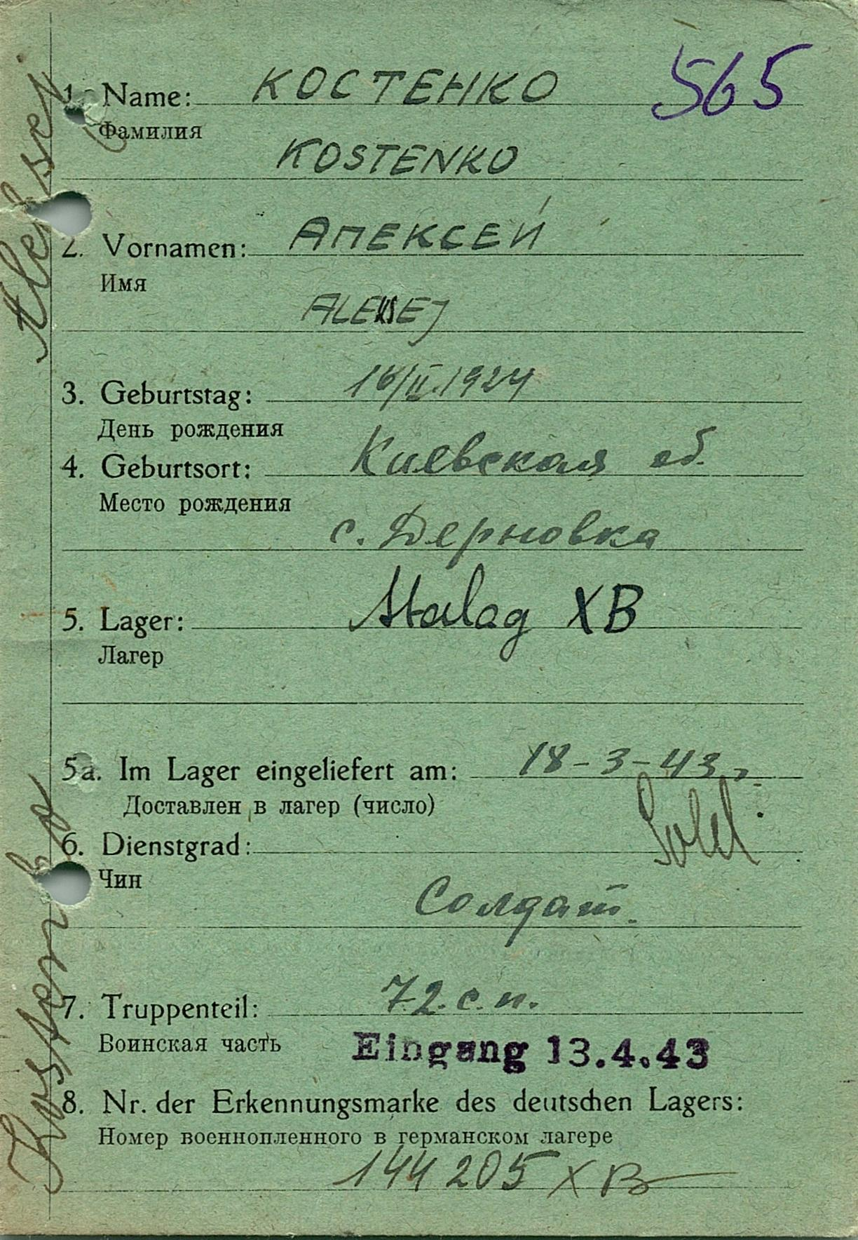 Военнопленные, трофейные карточки. Киевская обл.