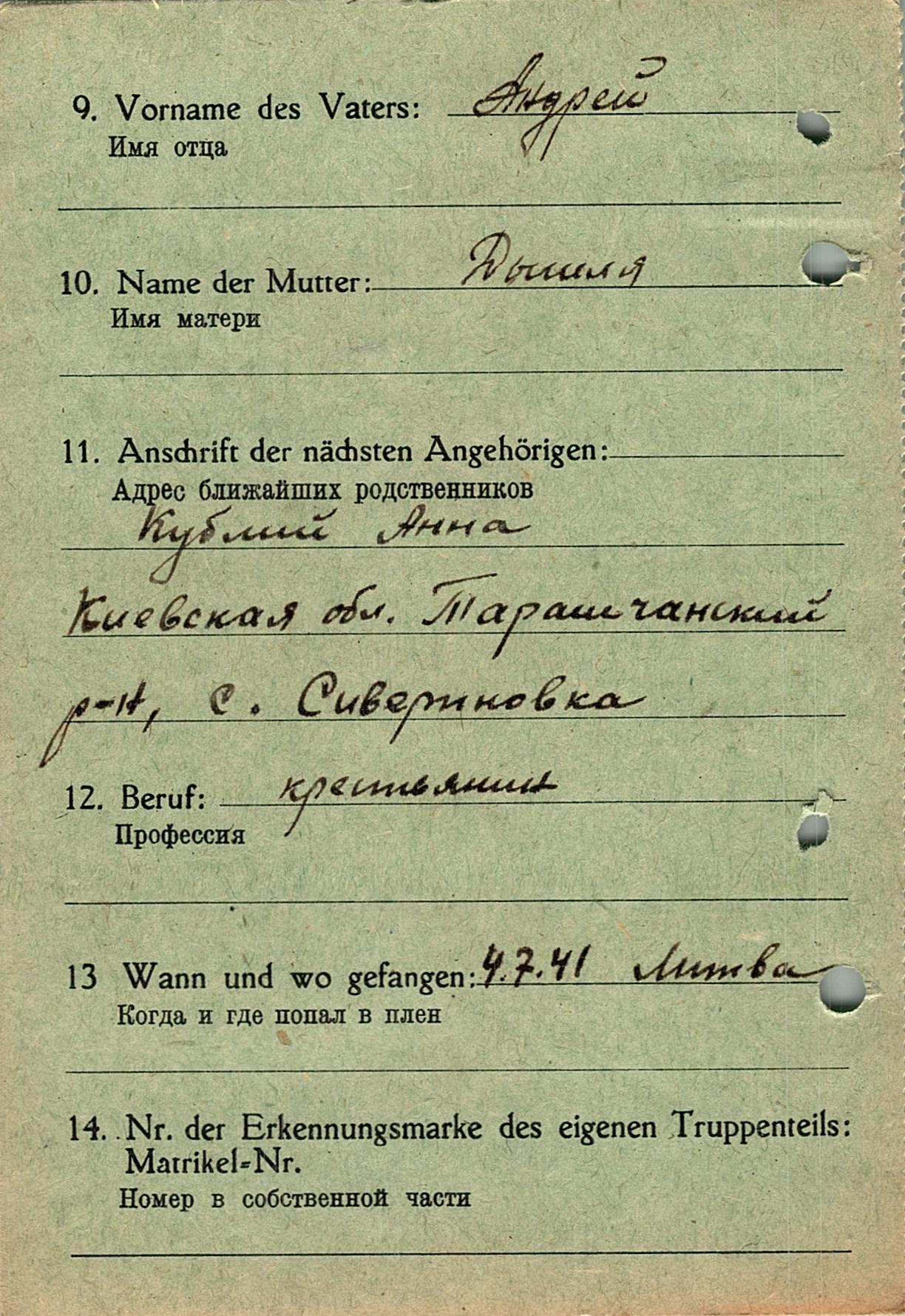 Военнопленные, трофейные карточки. Киевская обл.