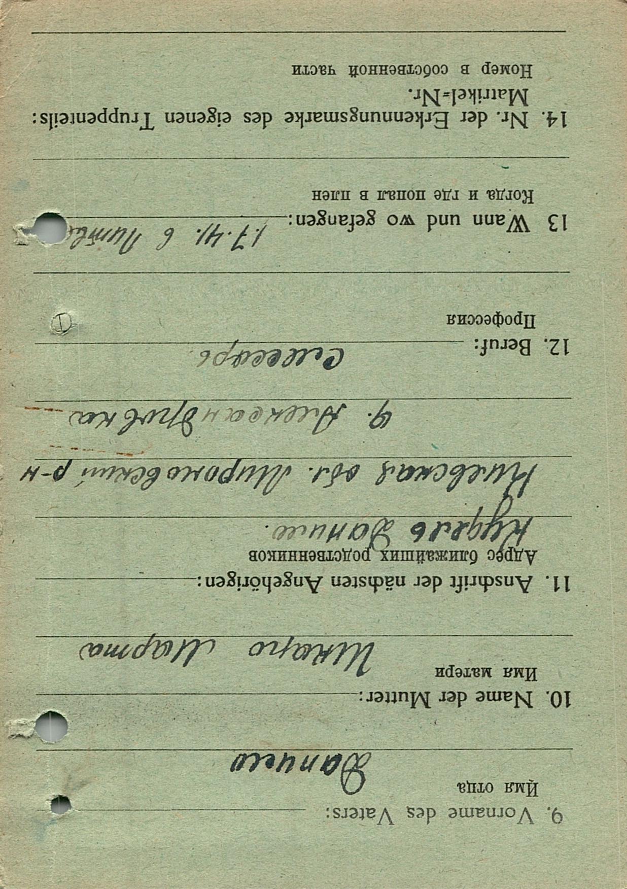 Военнопленные, трофейные карточки. Киевская обл.