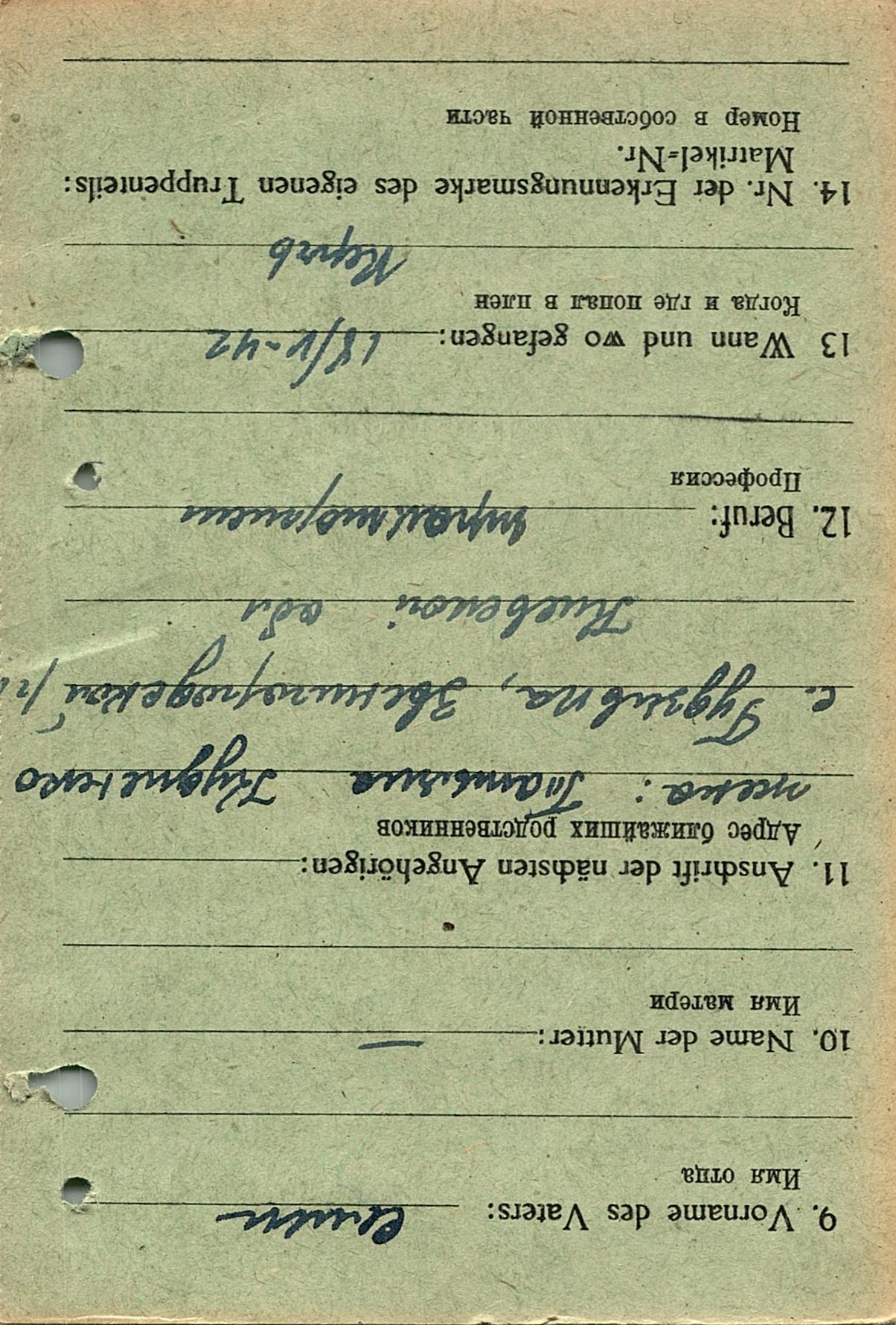 Военнопленные, трофейные карточки. Киевская обл.