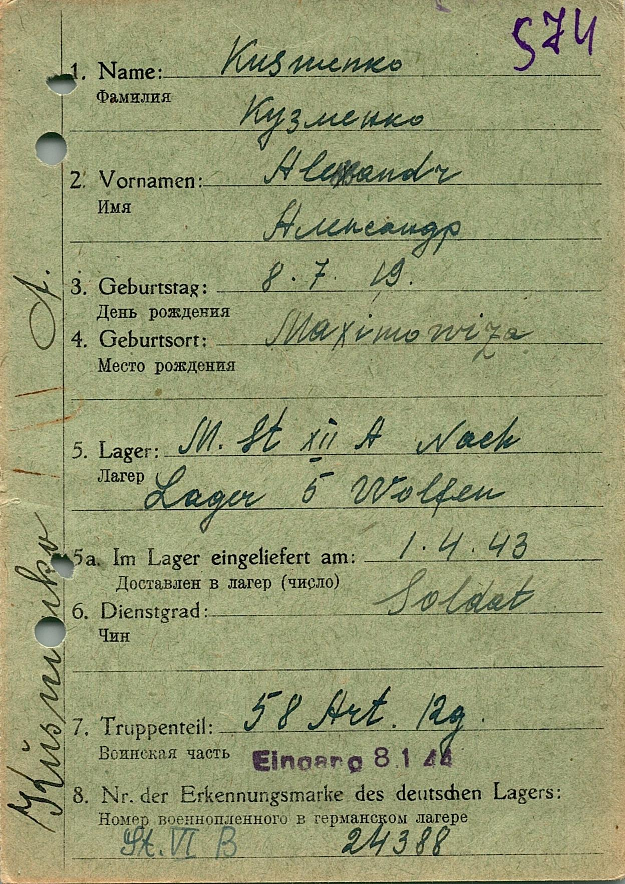 Военнопленные, трофейные карточки. Киевская обл.