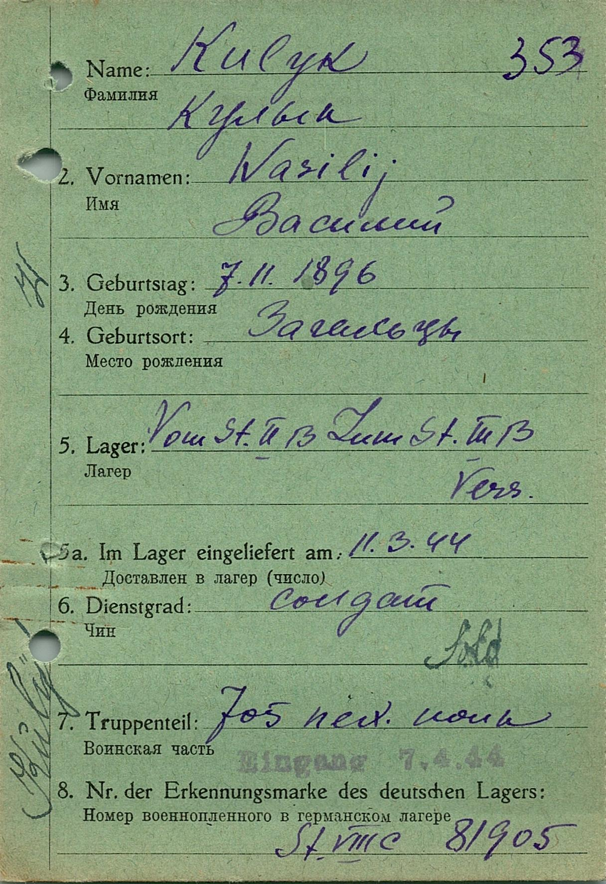 Военнопленные, трофейные карточки. Киевская обл.