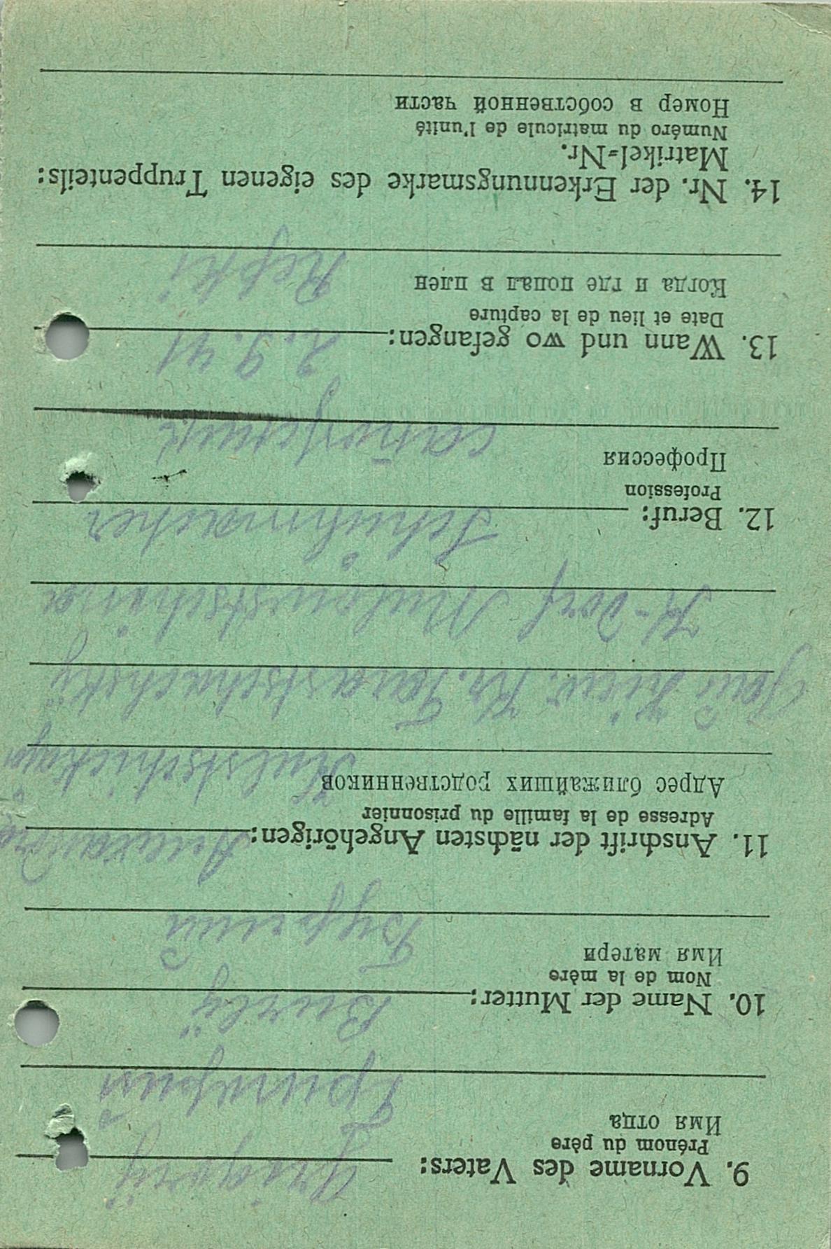 Военнопленные, трофейные карточки. Киевская обл.
