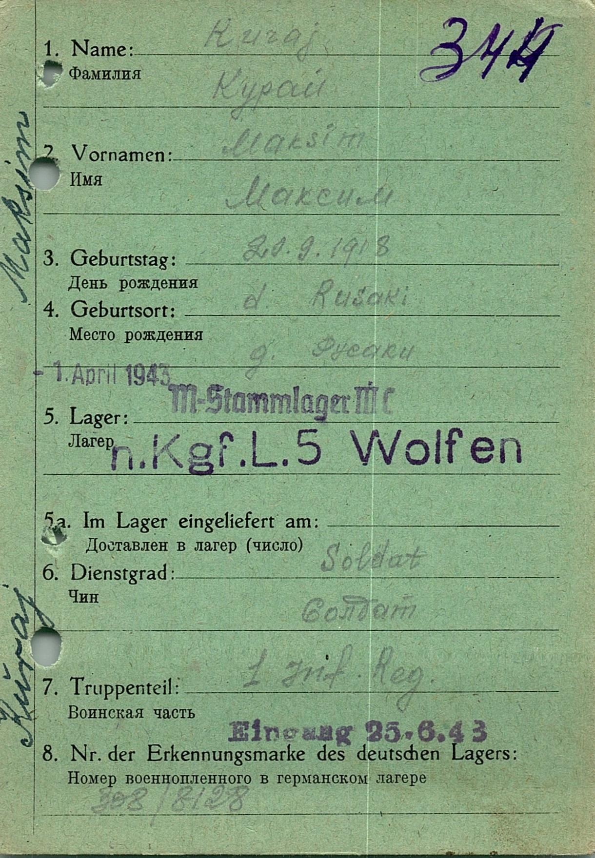 Военнопленные, трофейные карточки. Киевская обл.